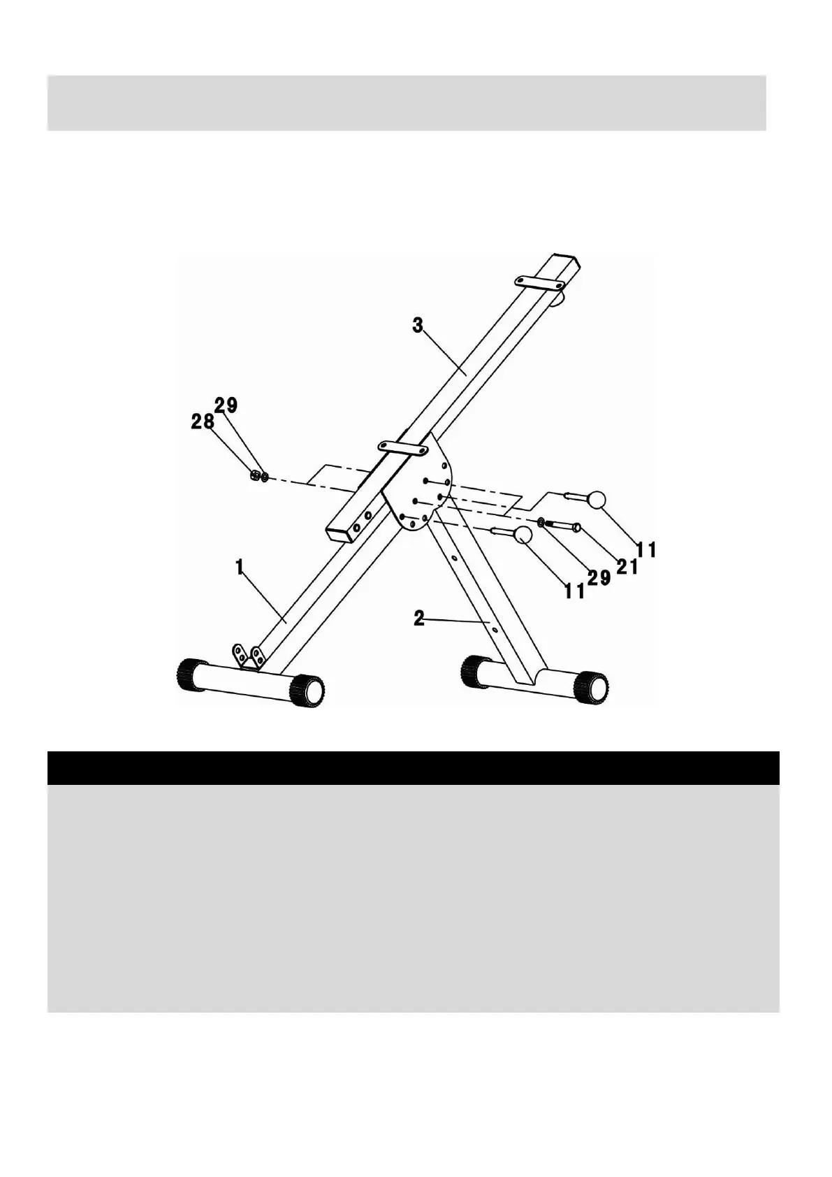 A. Attach the Front Stabilizer(1) and Rear Stabilizer(2) to the Backrest Support(3), Align the