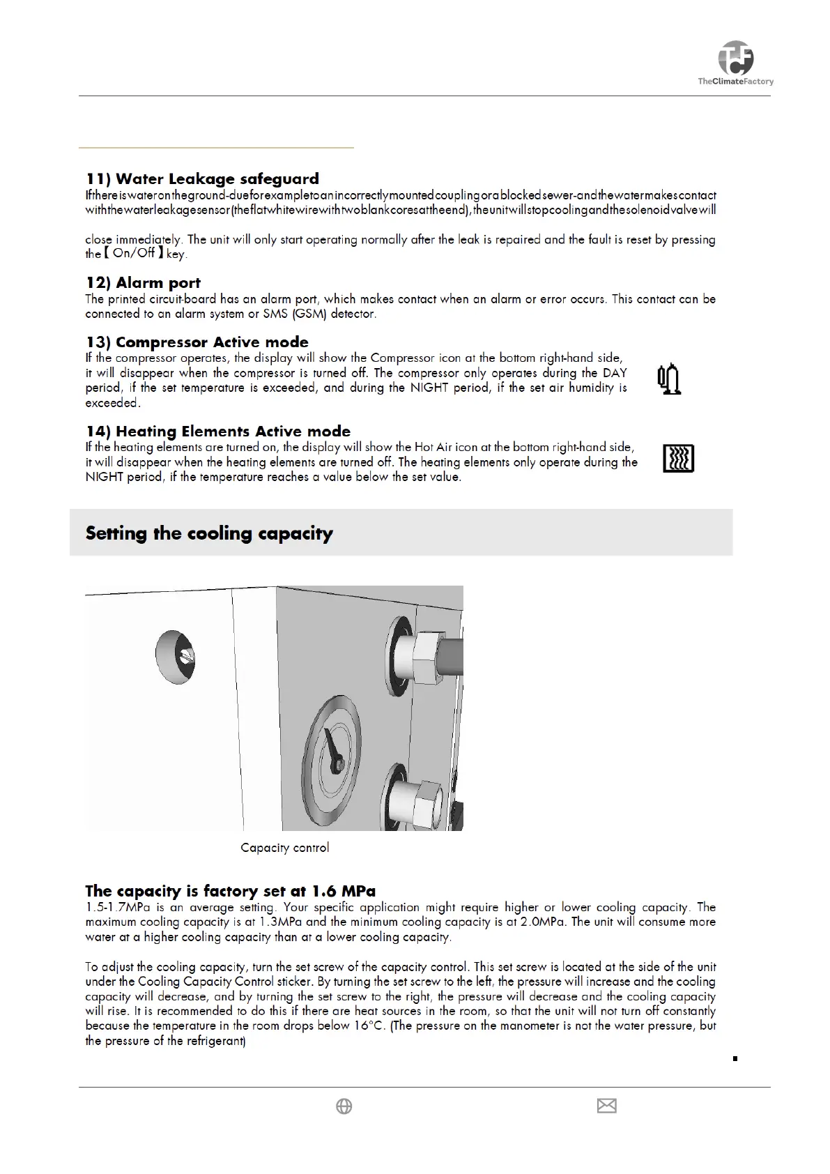 OPTICLIMATE 10000 PRO3 - SETTINGS (SETUP); Safeguards and Active Mode Indicators; Cooling Capacity Adjustment