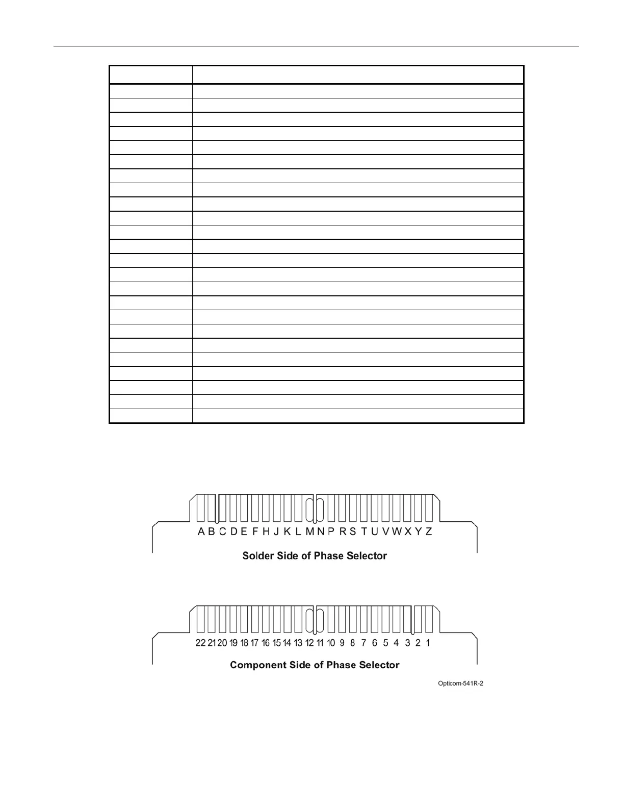 Figure 11-1 Phase Selector Edge Connector Pin Letters and Numbers