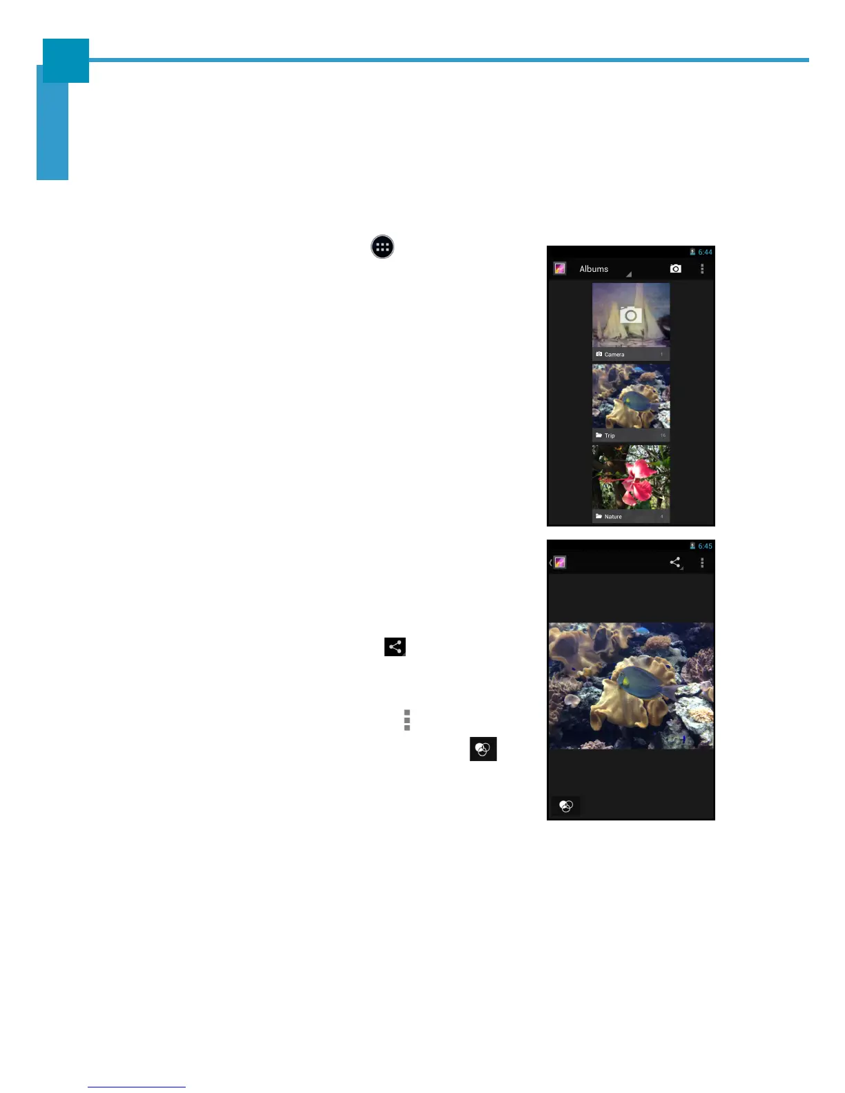 Use Gallery to view captured photos, recorded videos, or downloaded photos stored