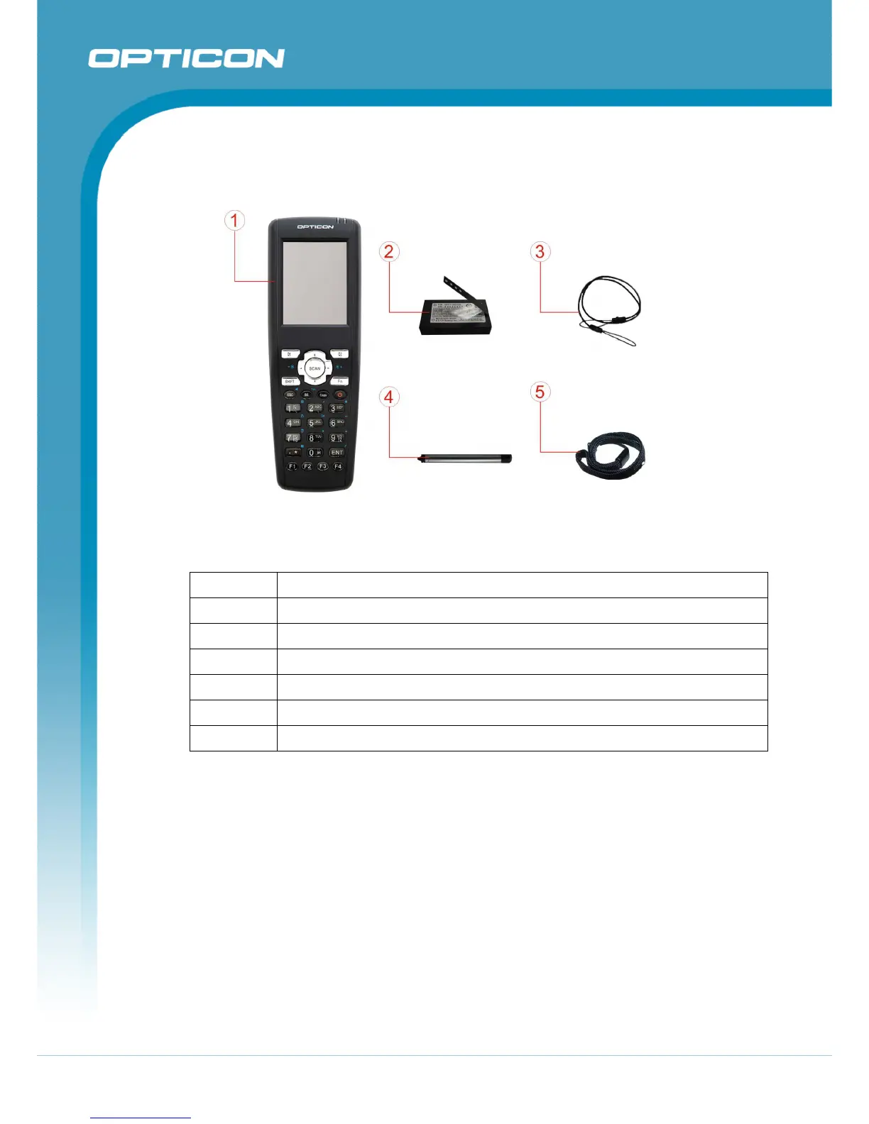 Opticon H15 - 2 Getting Started; Table 2-1. H15 Package Contents