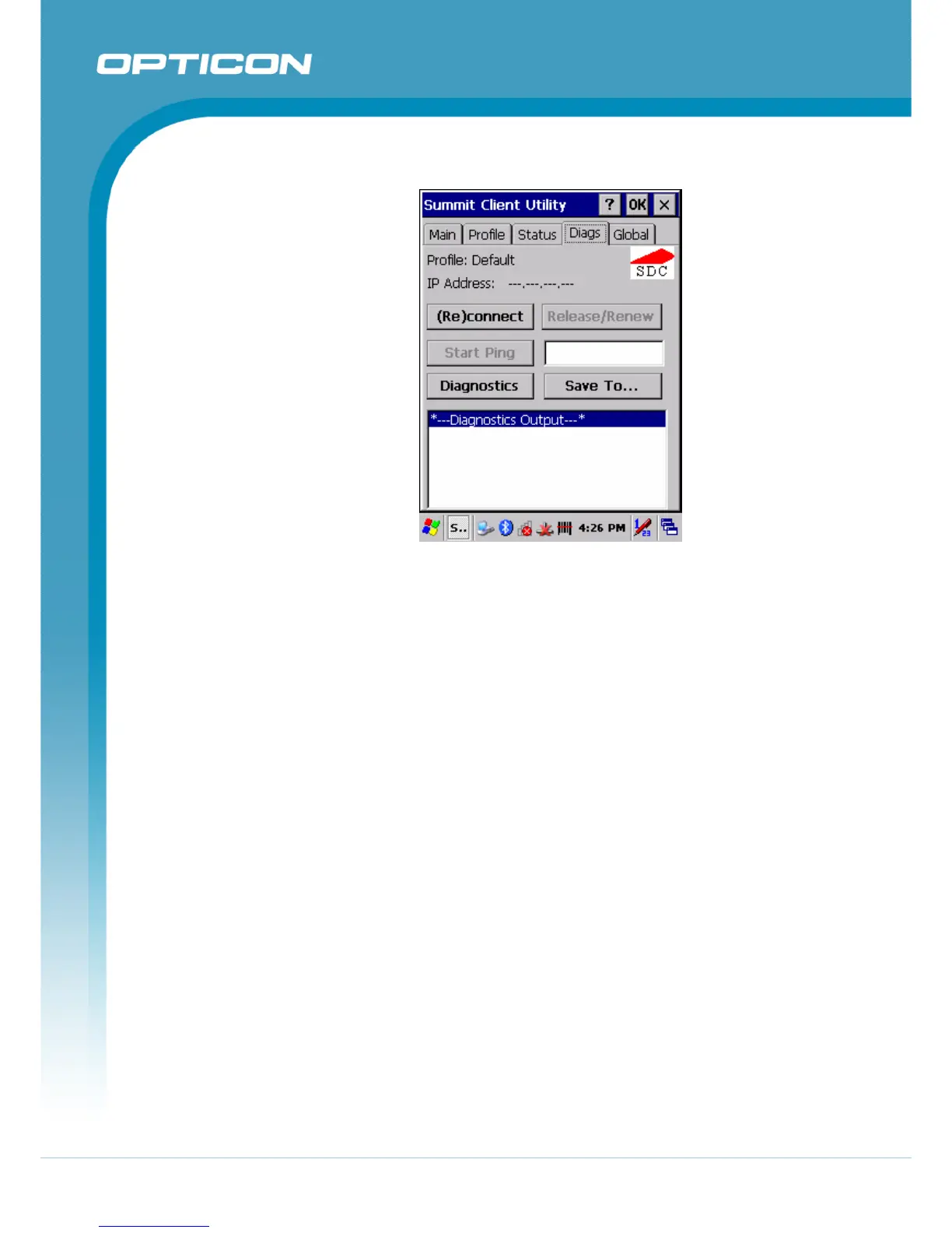 • Save To...: Save the diagnostics output to a file.