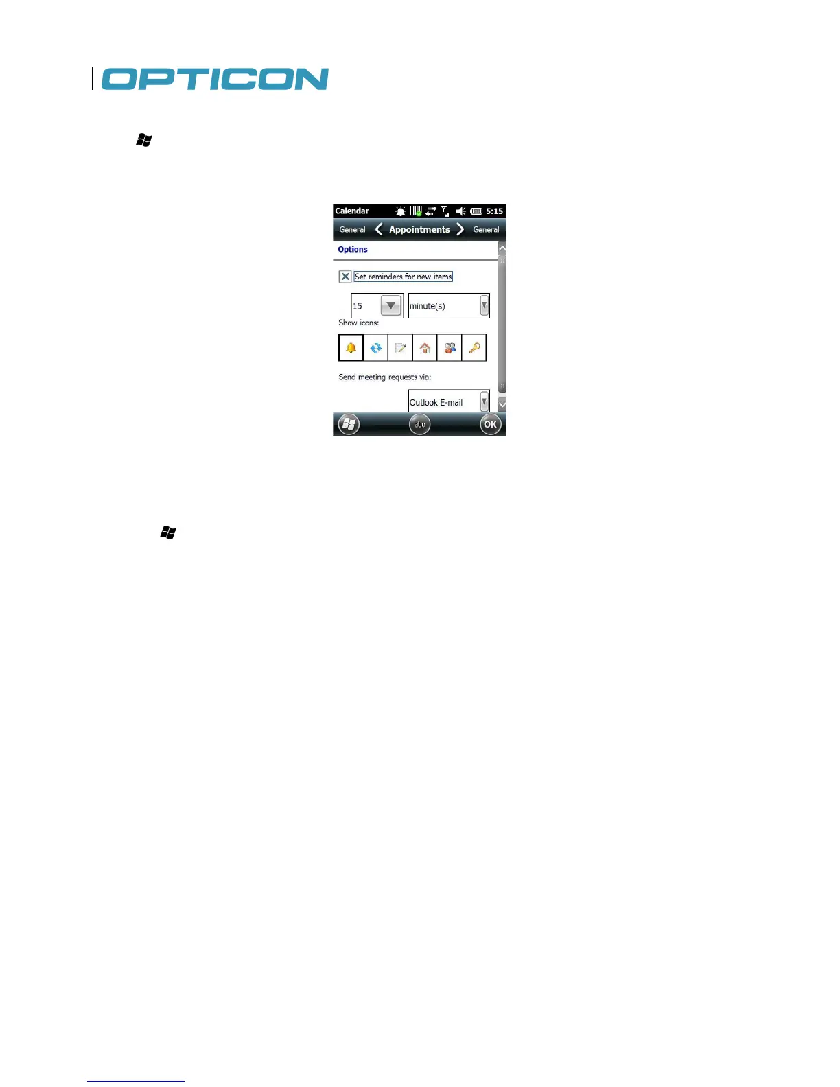 Tap Menu > Tools > Options > Appointment.