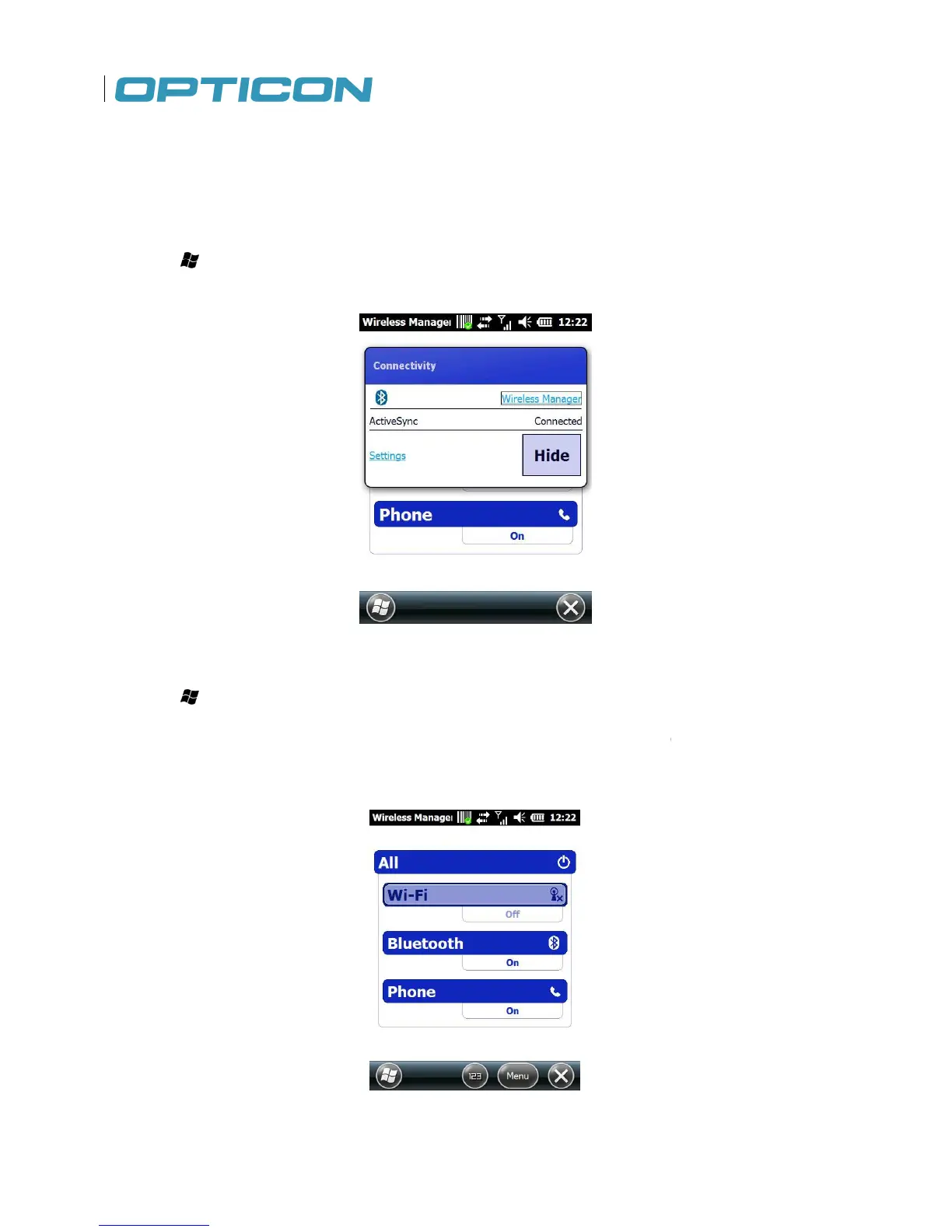 2. Tap the Signal Strength icon and tap Wireless Manager. See below.