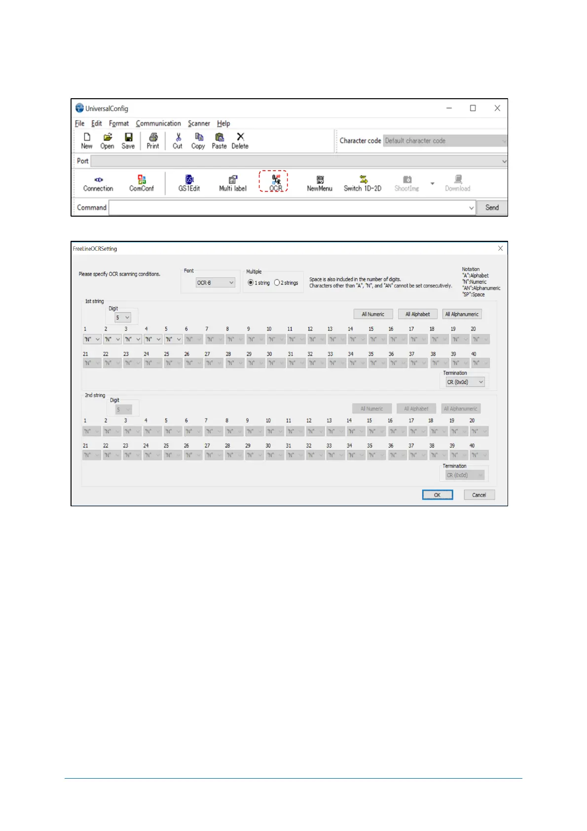 To read OCR standard format, set from UniversalConfig OCR free edit function.