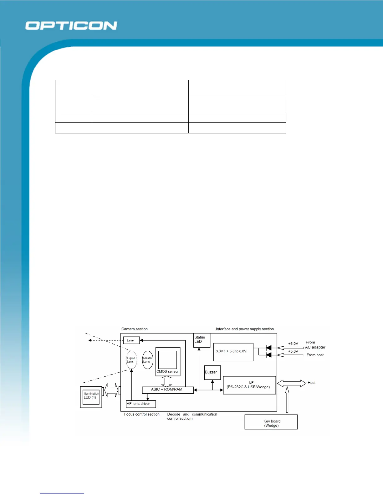 section that decodes 1D and 2D symbologies data from the scanned image; an interface