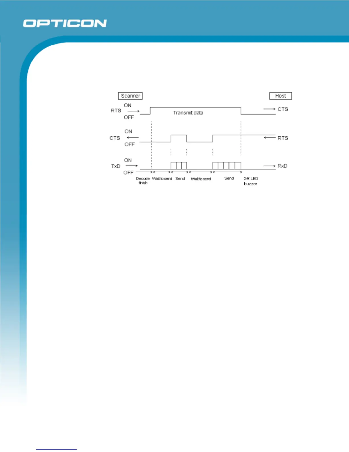 The scanner turns RTS line ON before transmitting data. Other processes are