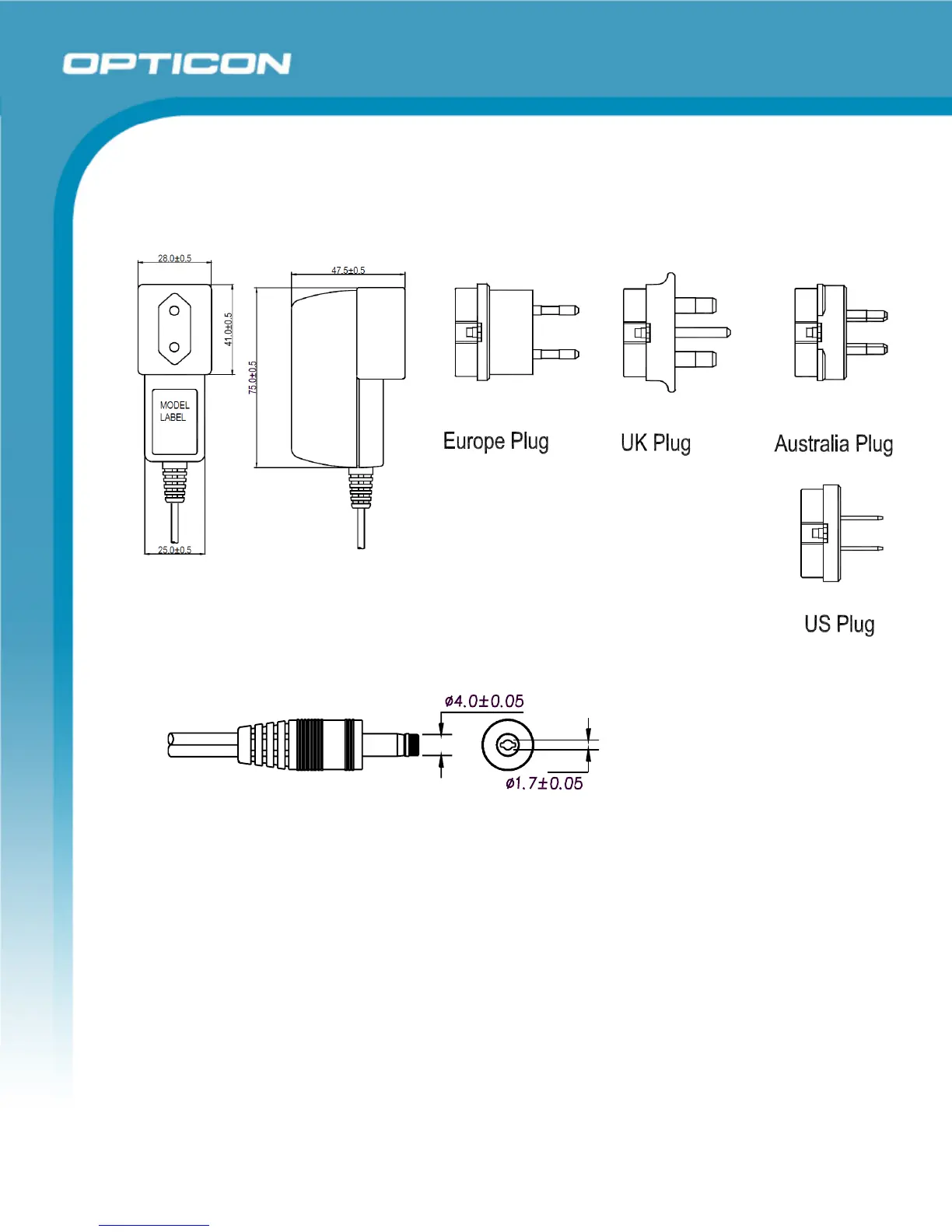 Opticon OPI 2201 - Detailed View of the AC Adapter