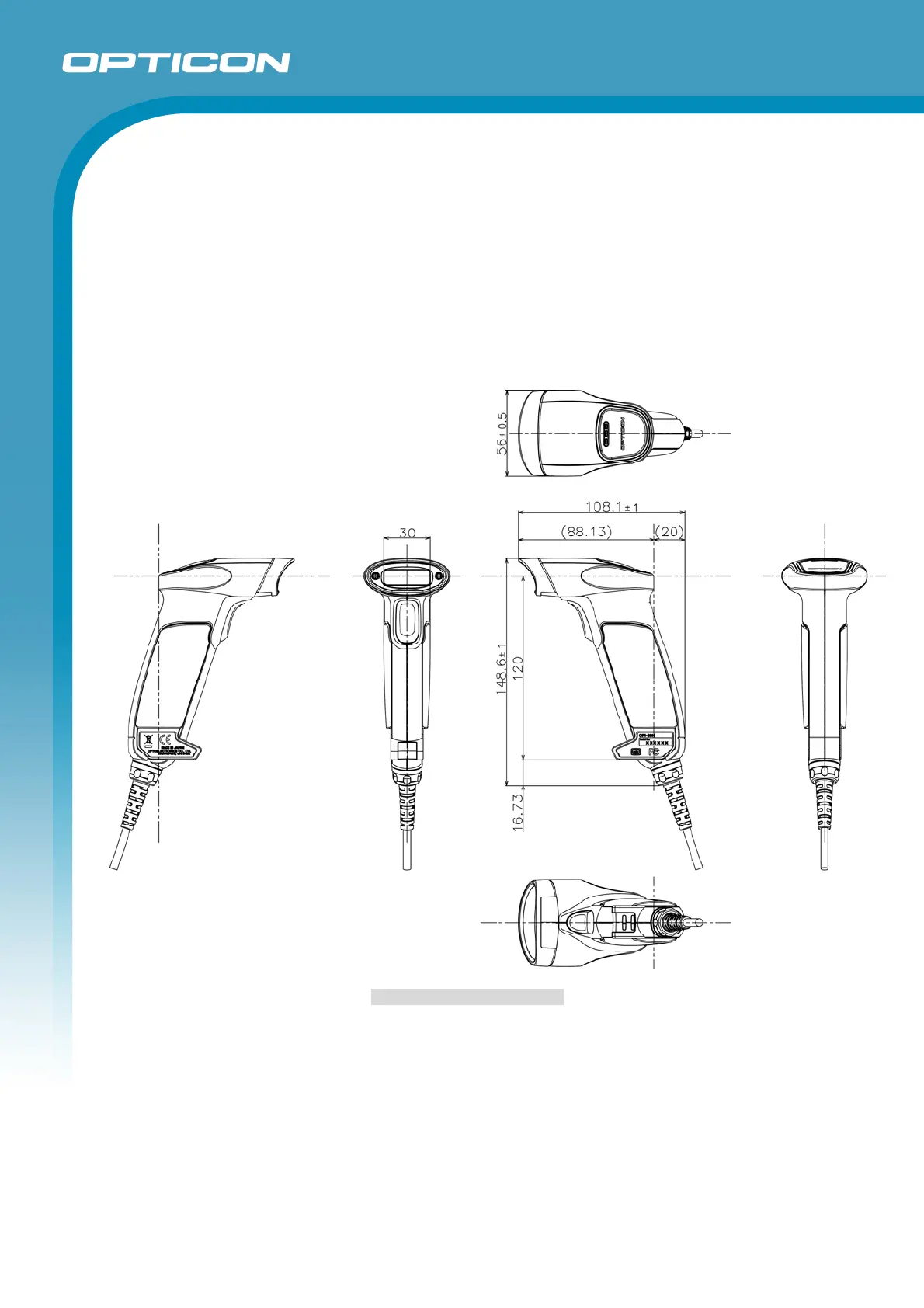 Opticon OPI-3601 - 18. Physical Features; 18.1. Dimensions; 18.2. Weight; 18.3. Mechanical Drawing