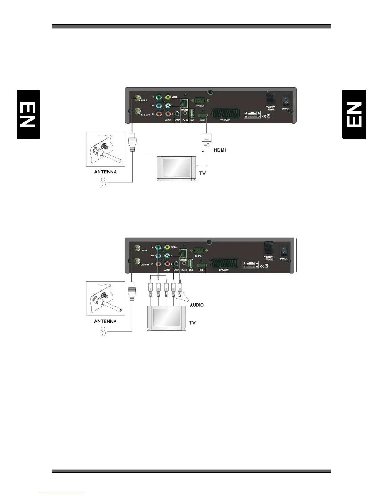 a) Connect the coaxial cable to “LNB IN” terminal marked at the rear of the receiver.