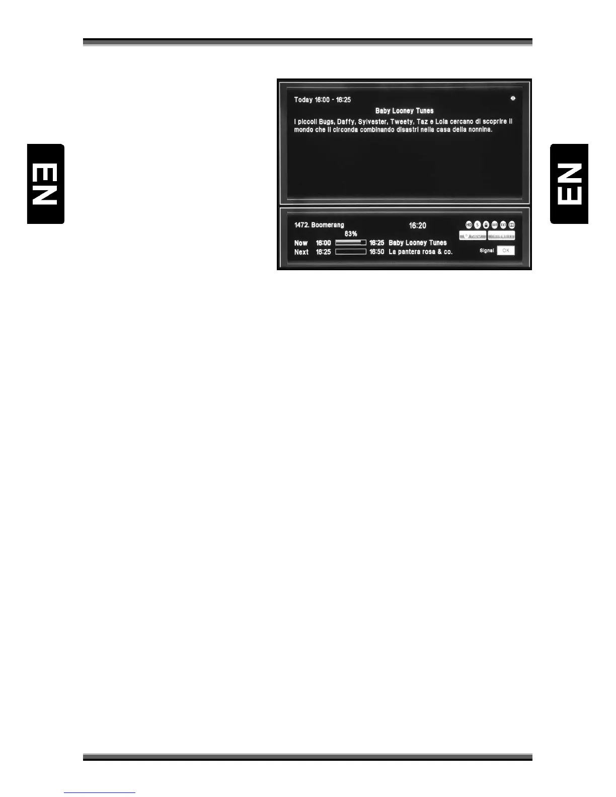 • Status icons of channel (HD,
