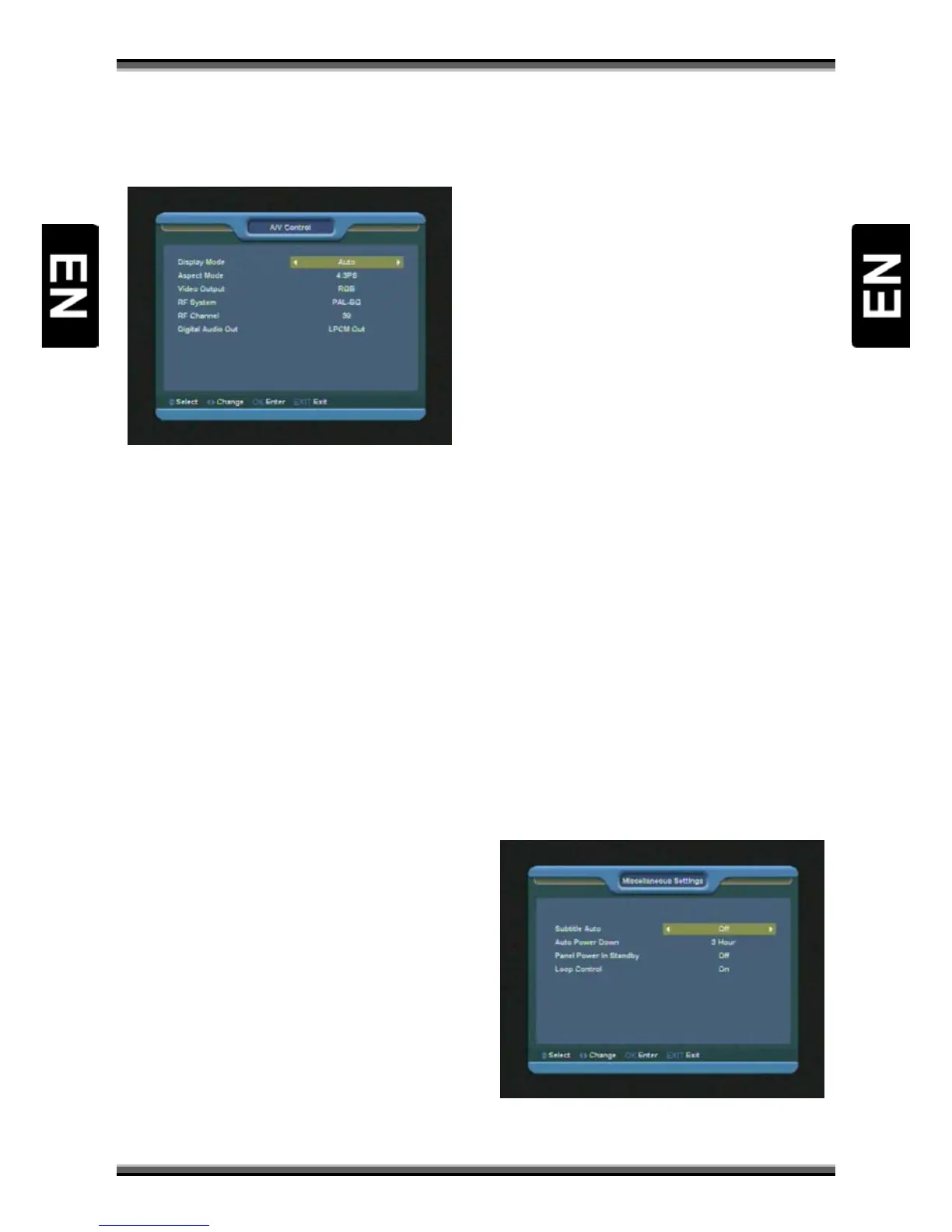 When you enter to “A/V Control” menu, you will