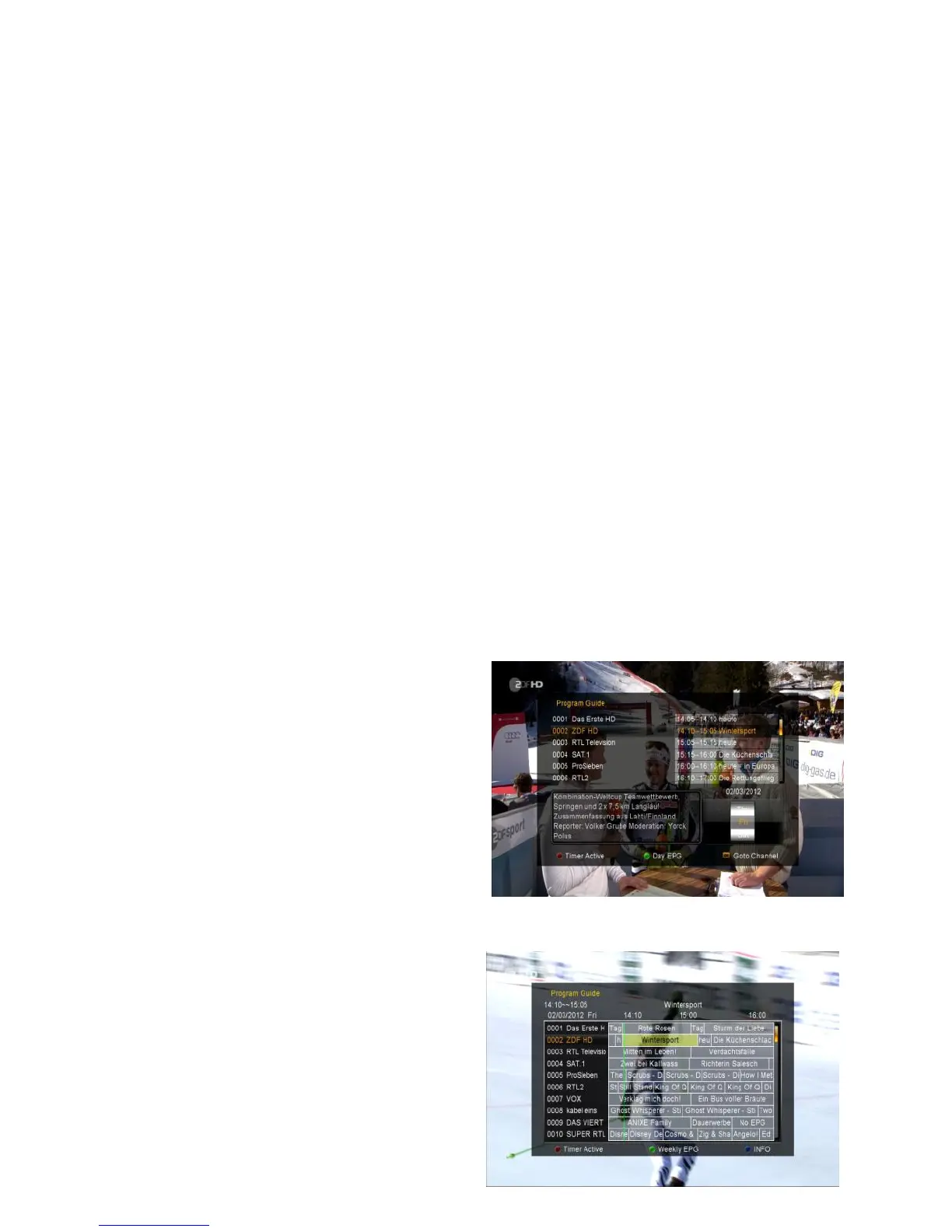 2. Press the GREEN button to switch EPG mode between Weekly EPG and Day