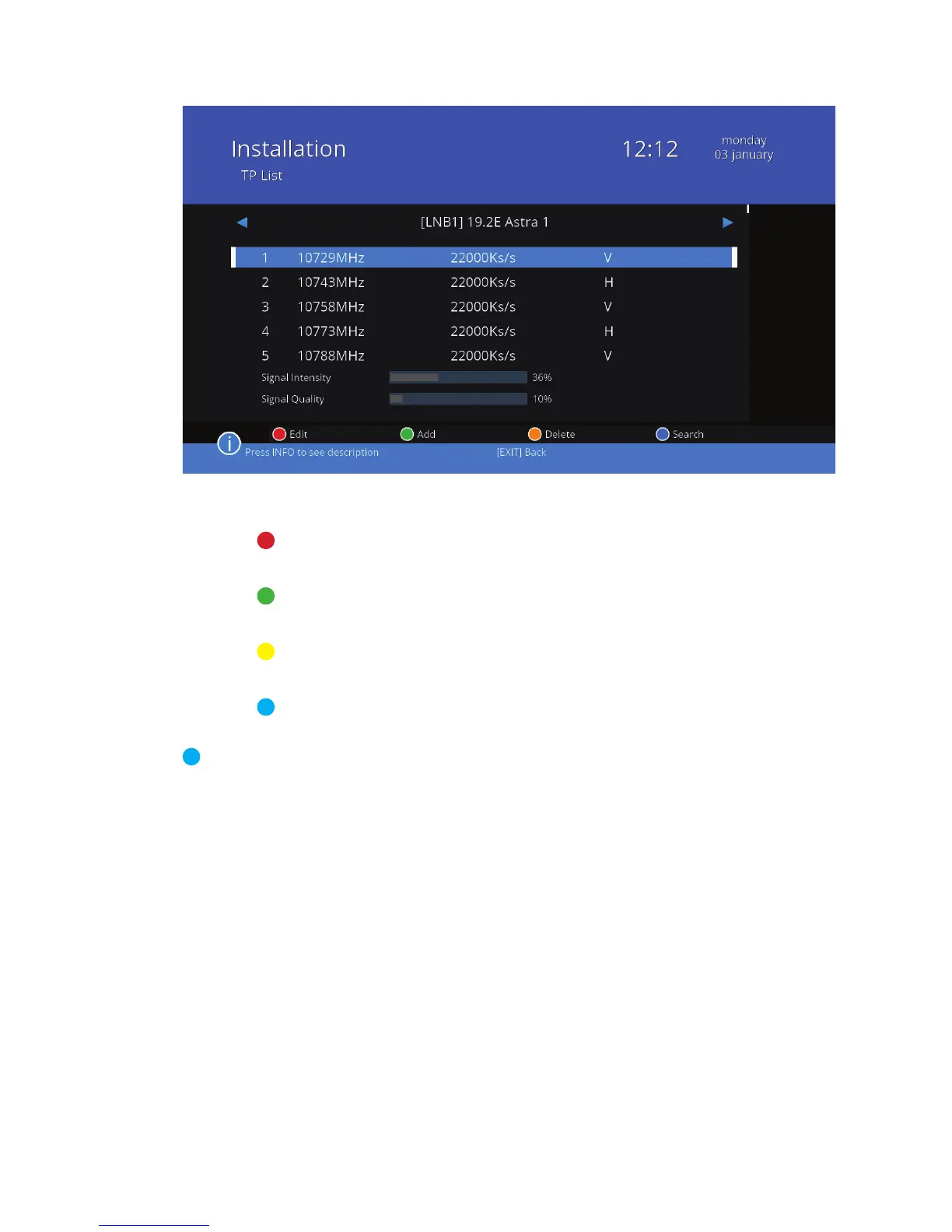 Features available in the edit transponder window (colored buttons):