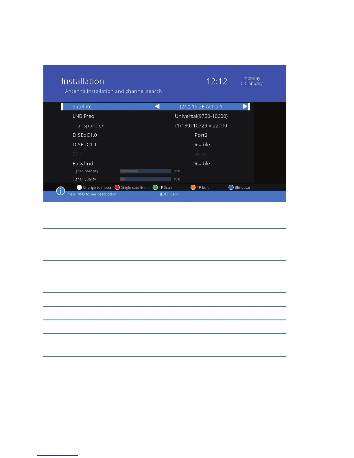 DiSEqC1.0 Select the port to which you have connected the DiSEqC.