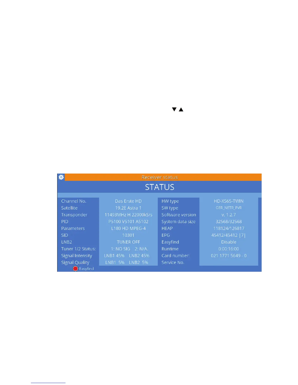 In the receiver status there is also available the EasyFind function. Press the