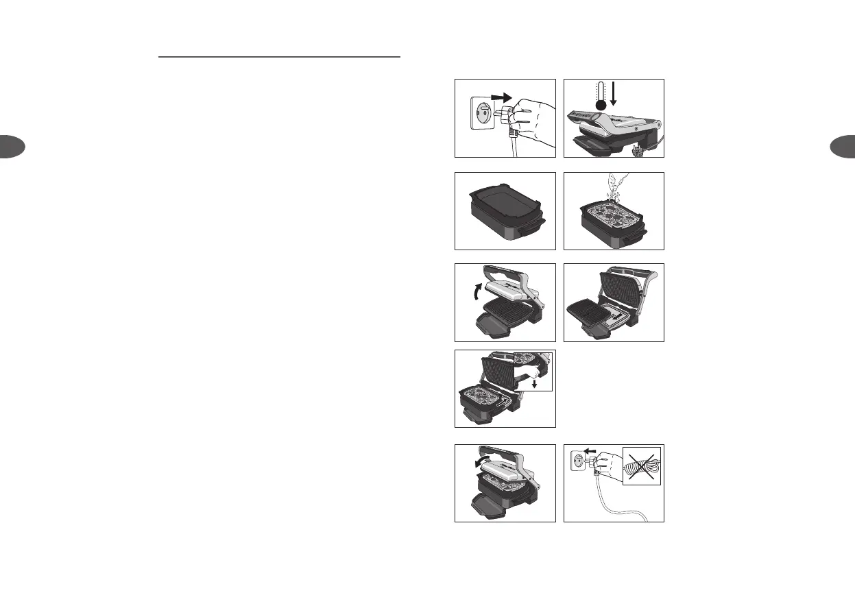 • No caliente nunca el aparato sin las 2 placas de cocción o sin la parrilla superior y el