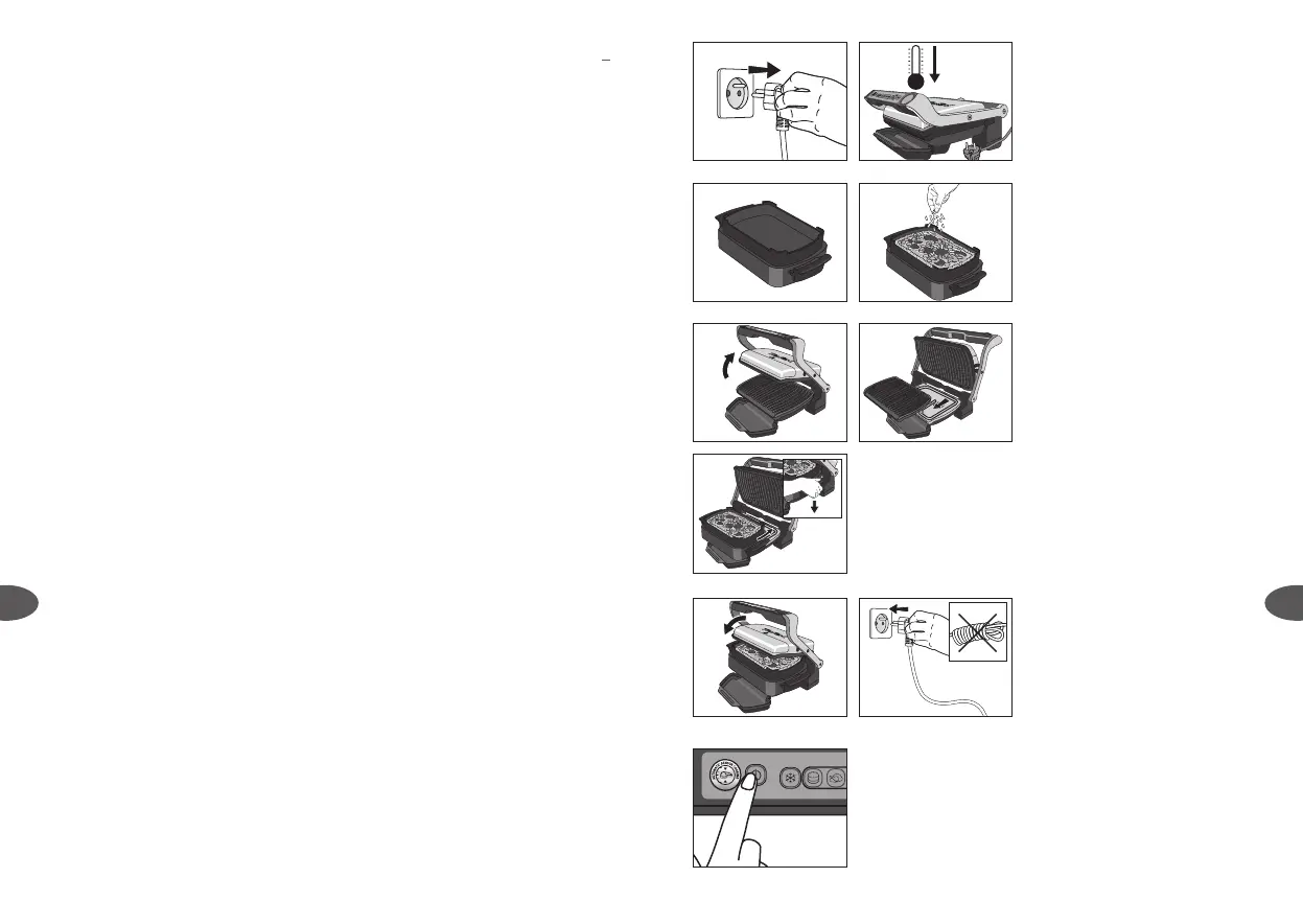 • Vericați ca ambele părți ale plăcii grill de sus și ambele părți ale tăvii de copt să