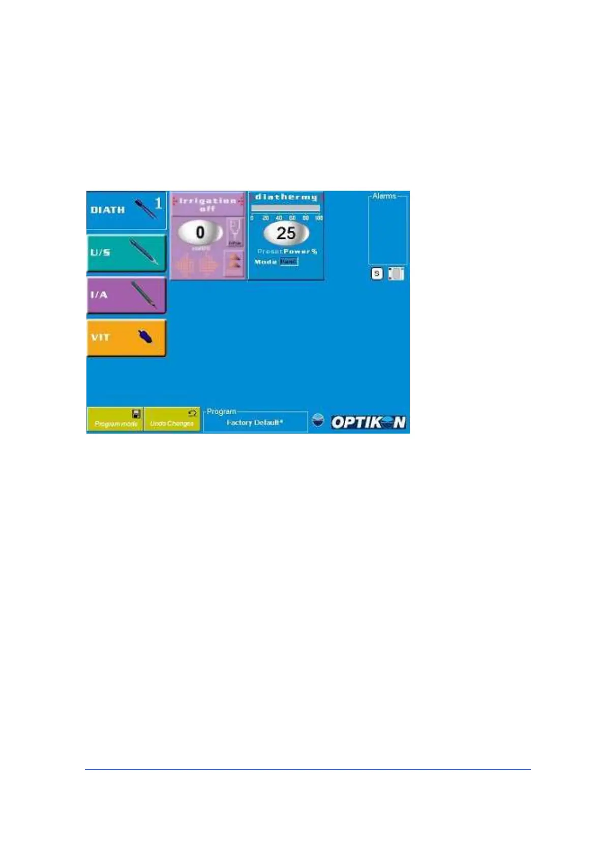 "DIATHERMY ONE" when bipolar diathermy is selected. Diathermy parameters