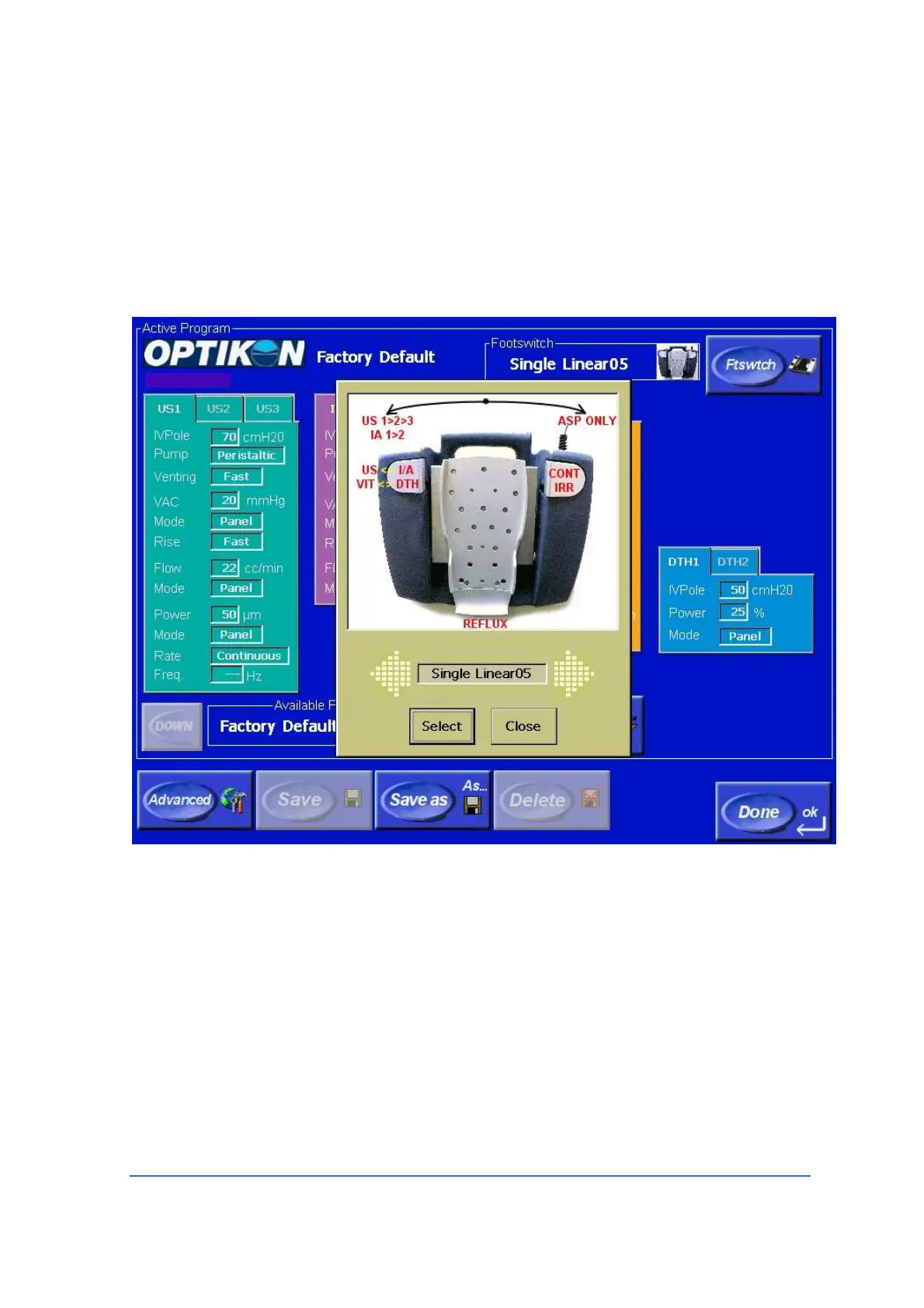 footswitches; touch the “Select” button to select the desired footswitch.