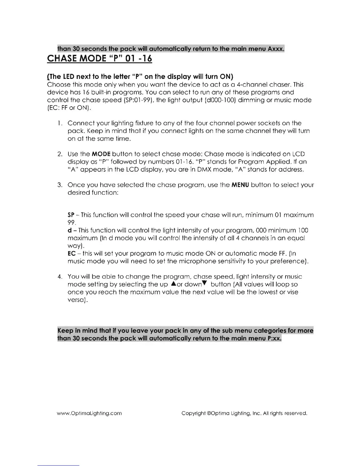 than 30 seconds the Rack willautomatically return to the main menu Axxx.