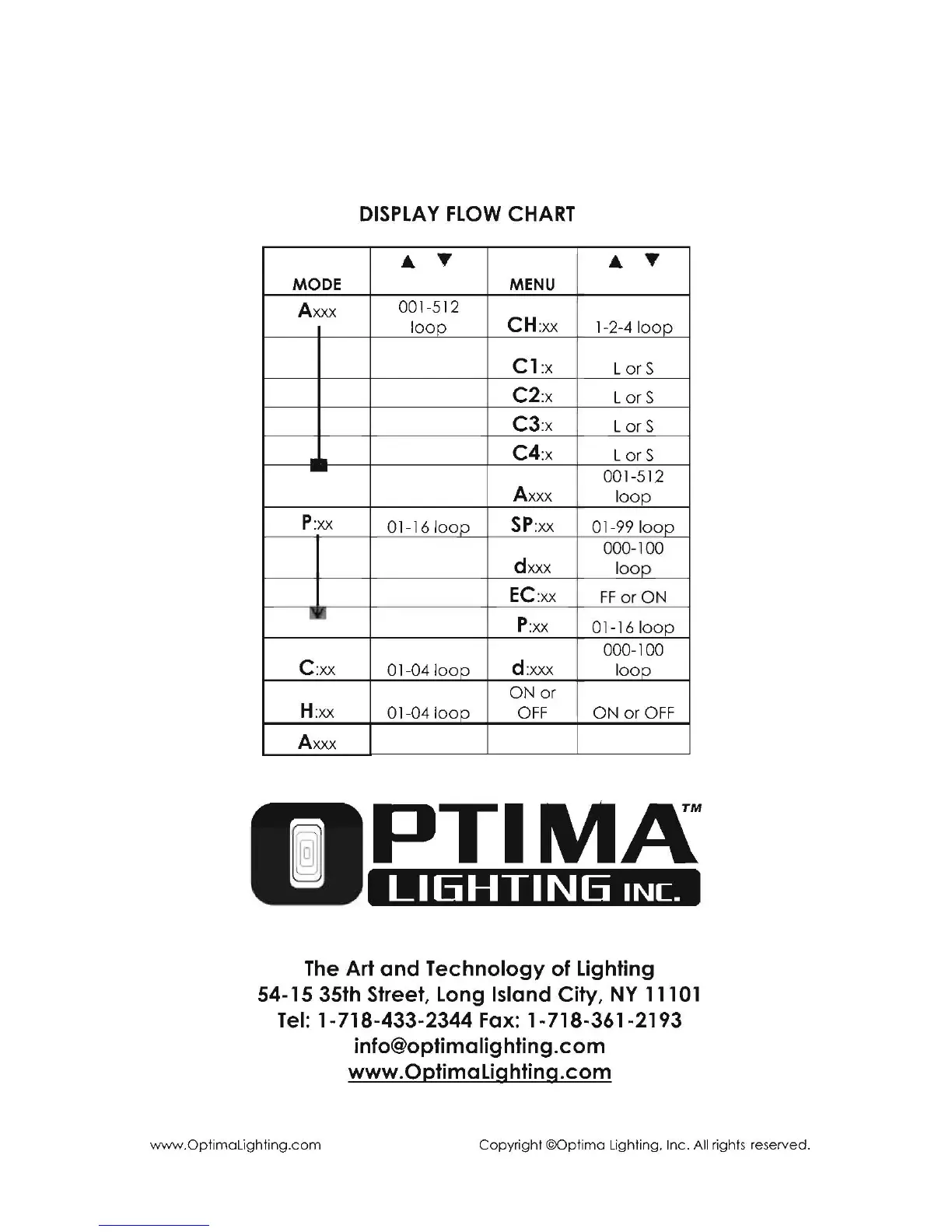 Optima Lighting Matrix DMX PRO+ - Display Flow Chart