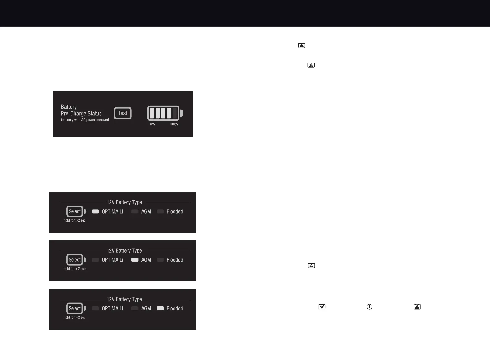 Note: If the user did not set a battery type, this Pre-Charge Battery Status function will be disabled.