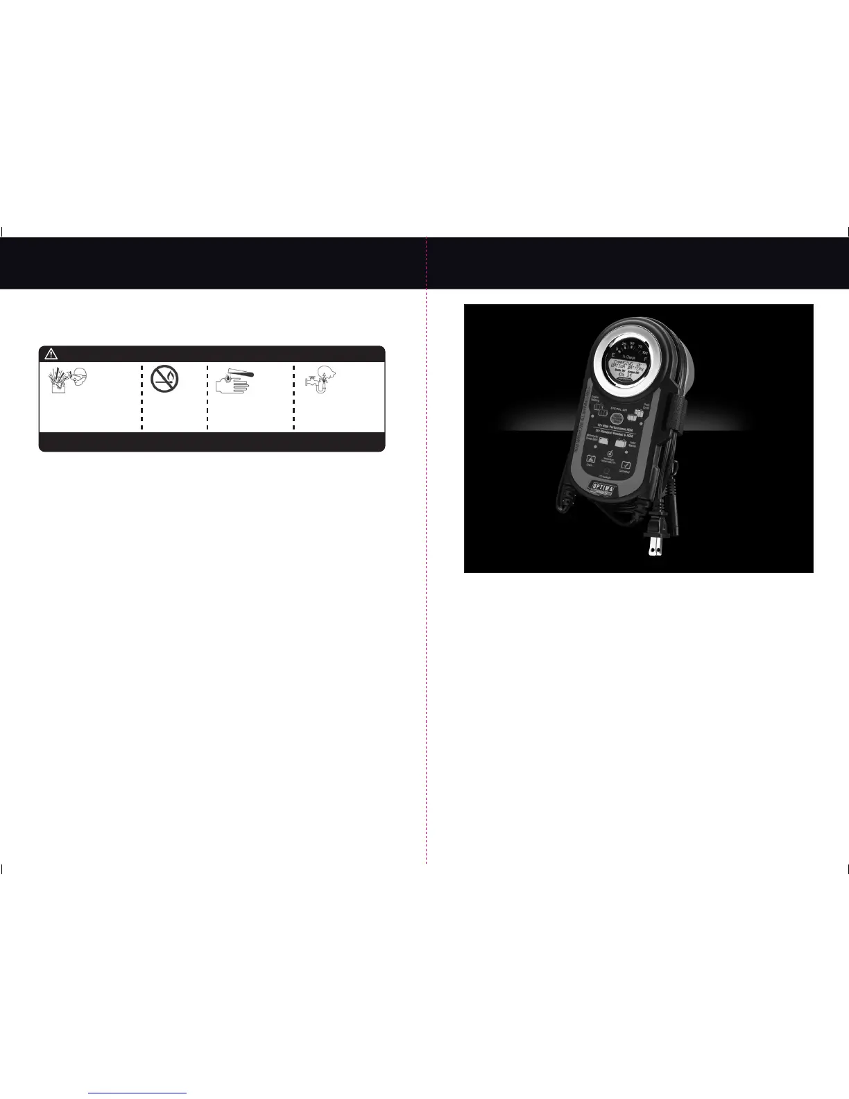Ne jamais se pencher au-dessus d’une batterie durant le démarrage, la vérification ou le chargement.