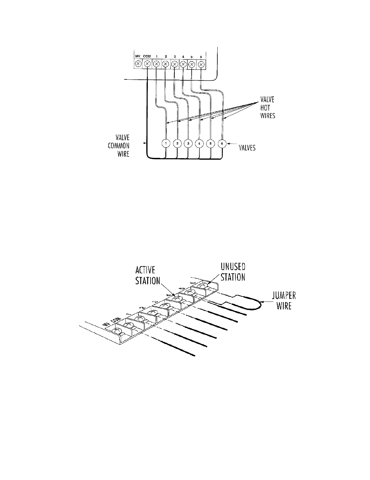 1 -6 on the number of stations on your timer model. Connect wire from valve 1 to terminal 1, valve 2