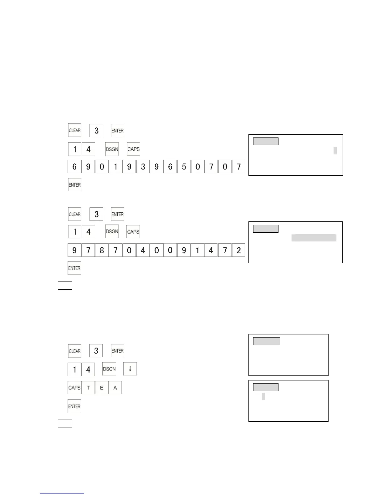 *[CAPS] key must be pressed before entering barcode otherwise the barcode is