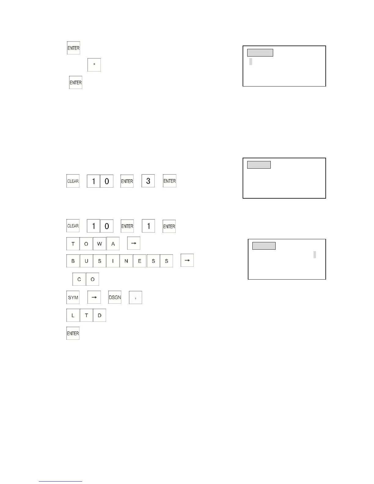 Example: Program the first line of commercial message as “TOWA BUSINESS CO., LTD”: