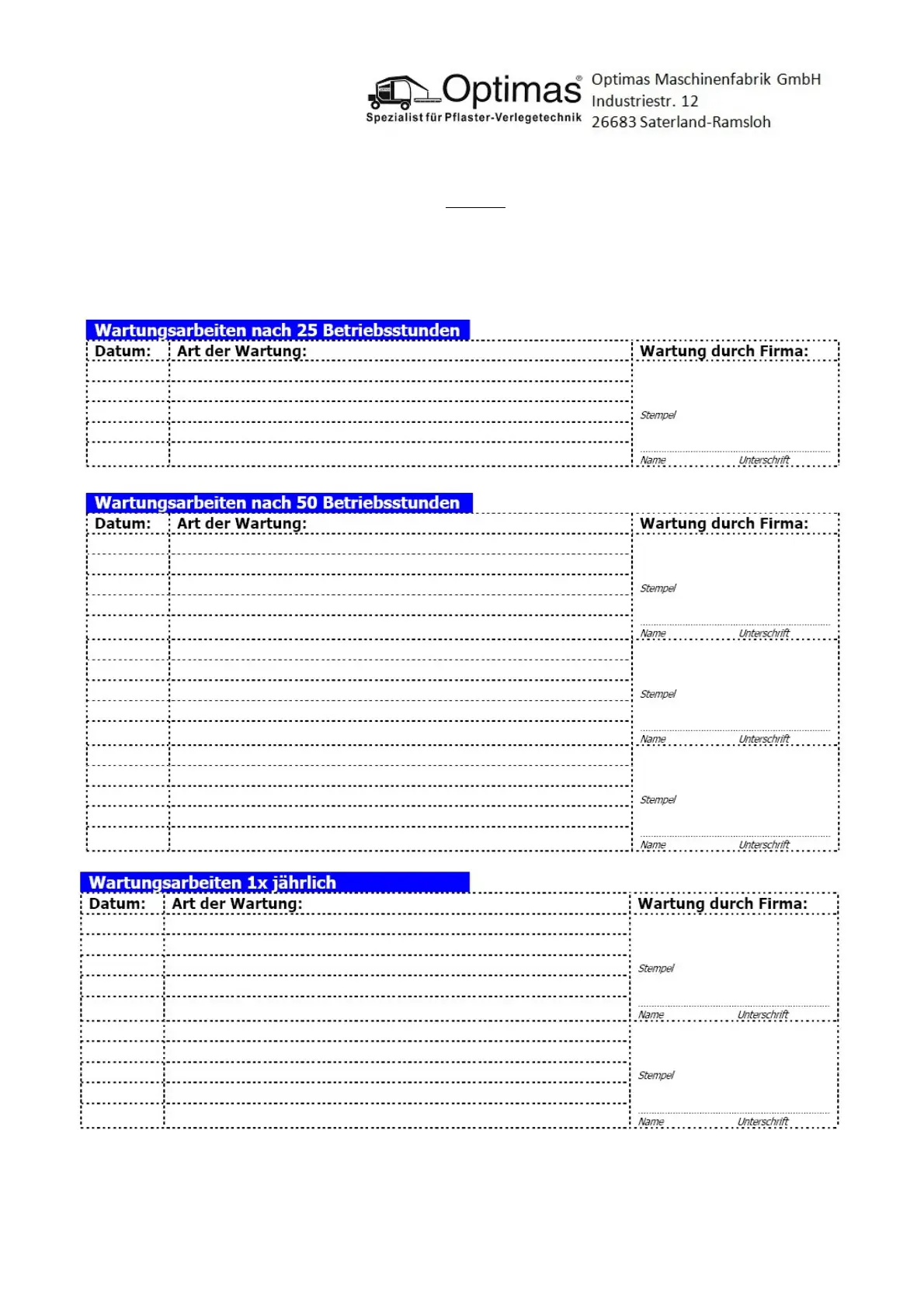 (In case of warranty claim, please add always copy of maintenance verivication)