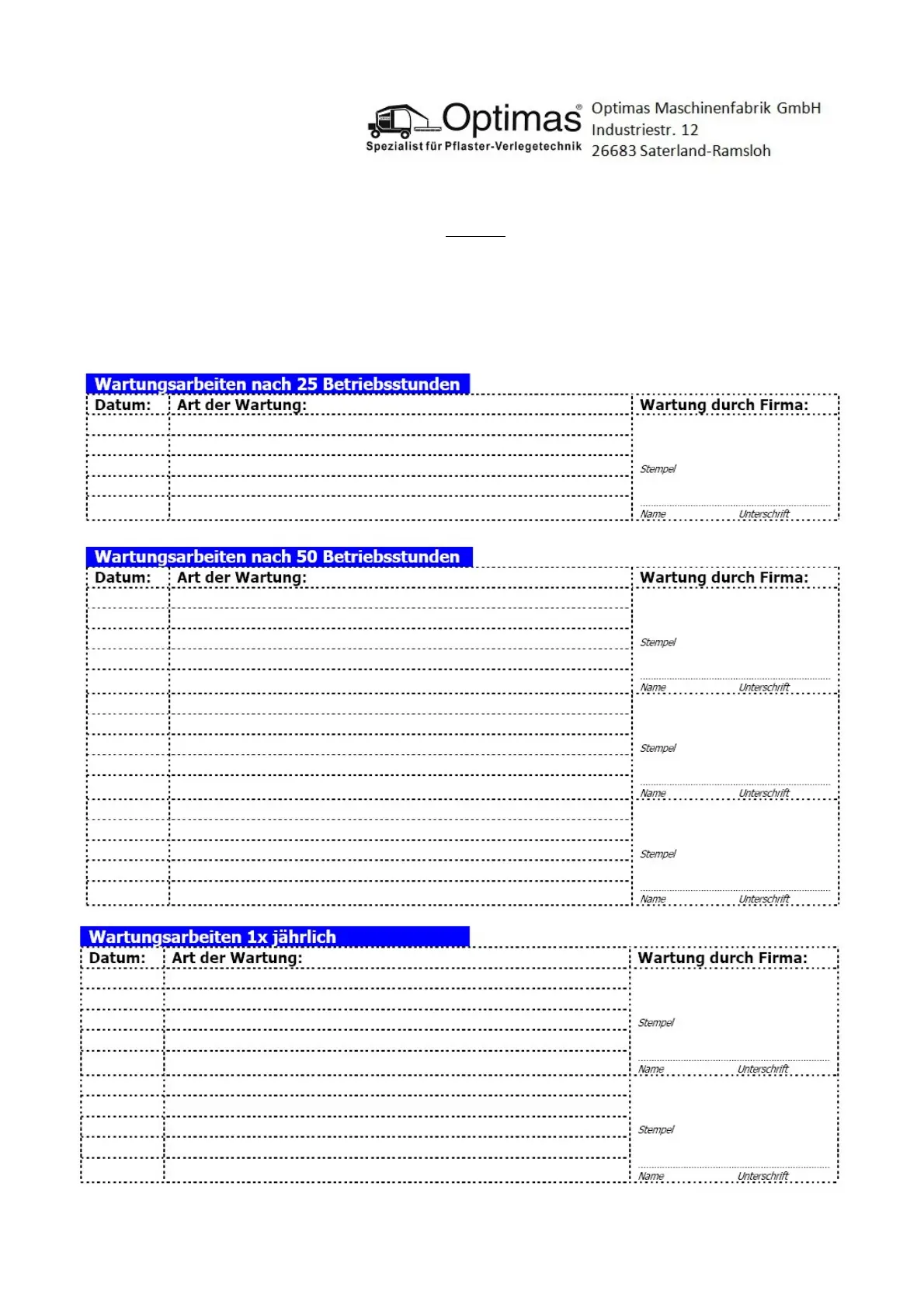 (In case of warranty claim, please add always copy of maintenance verivication)