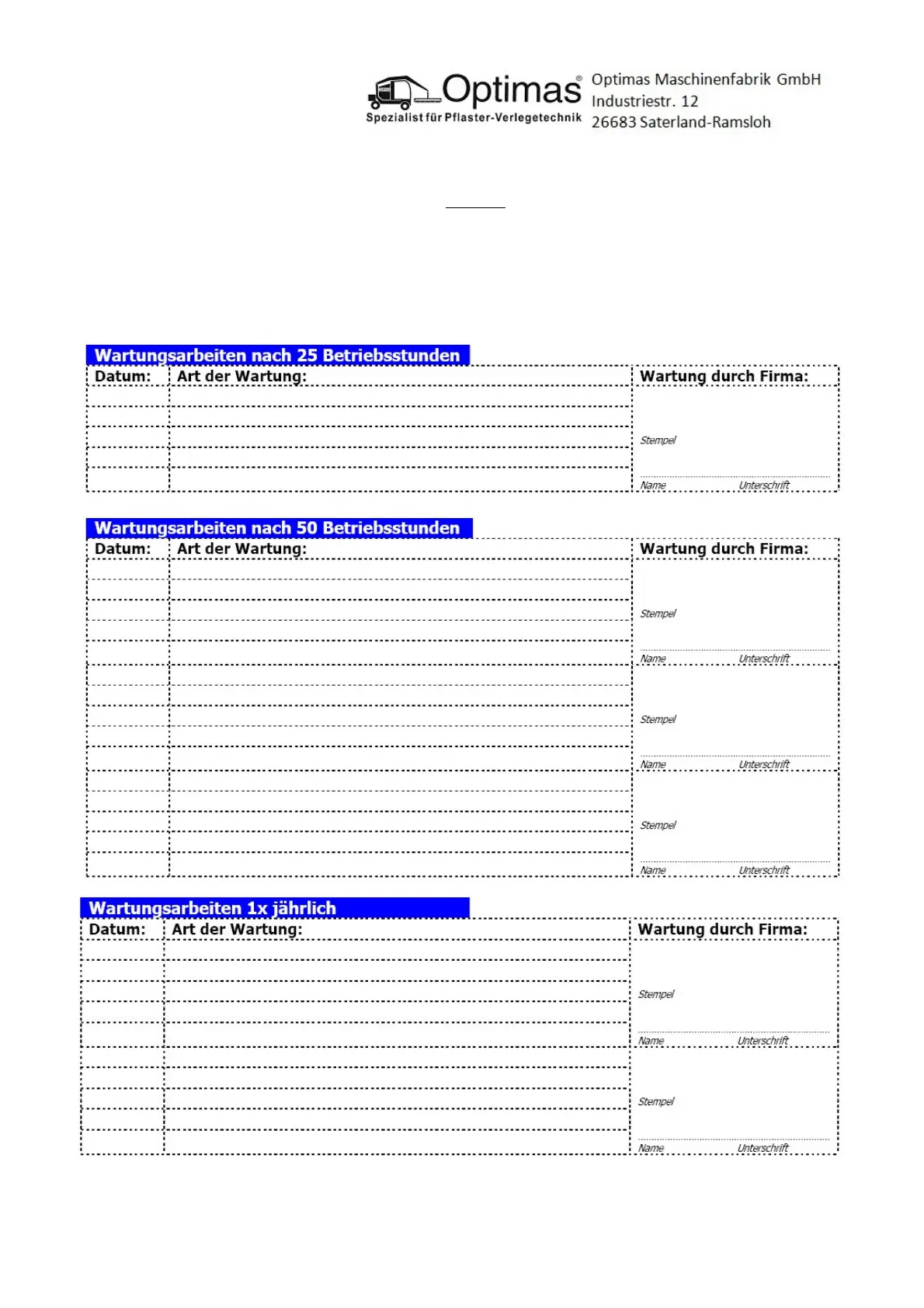 (In case of warranty claim, please add always copy of maintenance verivication)
