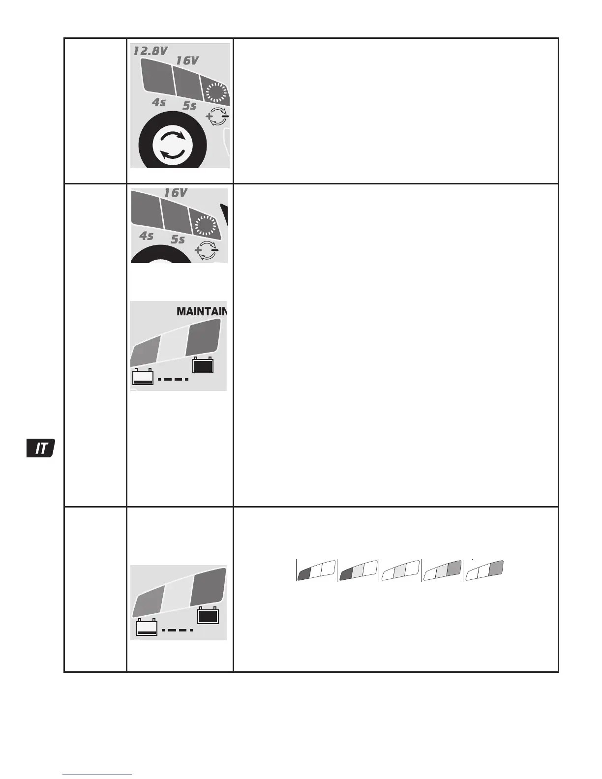 Il LED da 16 V (1b) è selezionato ed è collegata una batteria con tensione inferiore