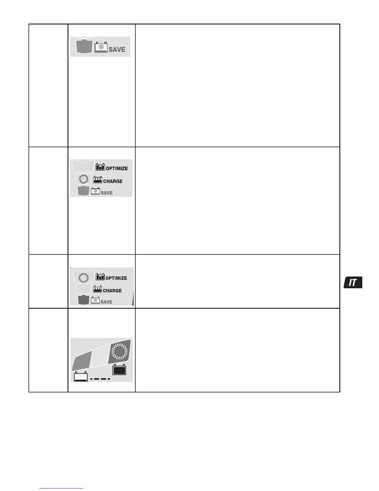 La modalità di OTTIMIZZAZIONE inizia quando la tensione raggiunge i 14,4 V (18 V) per la