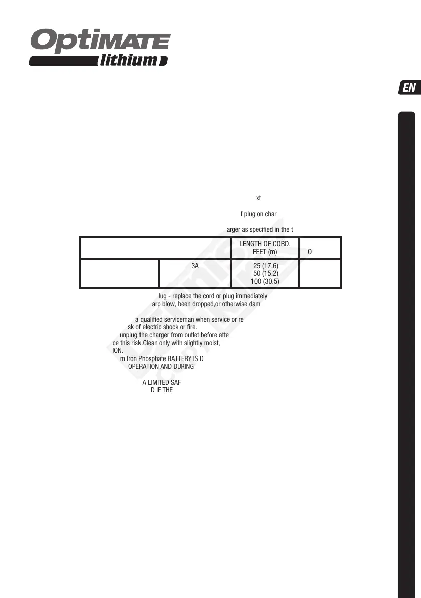 OPTIMATE LITHIUM BATTERY CHARGER. IT IS OF THE UTMOST IMPORTANCE THAT EACH