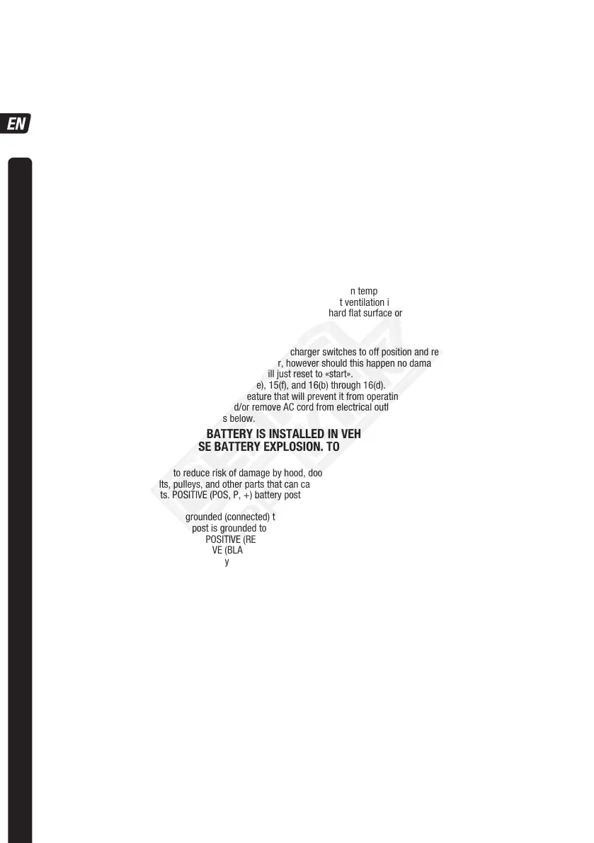 - RECEIVE HIGH CHARGE CURRENT IF THE BATTERY WAS DISCHARGED BELOW ITS NOMINAL VOLTAGE. ONLY USE A CHARGER THAT