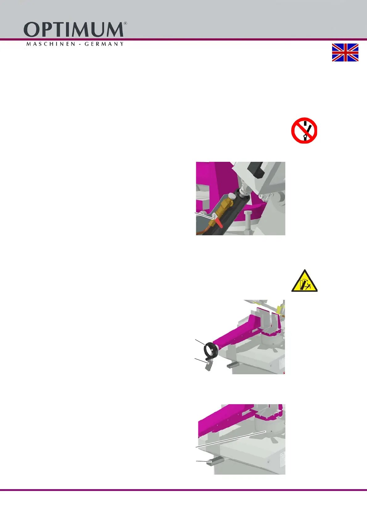Danger of tilting. Support long work pieces before pushing the piece to be cut into the