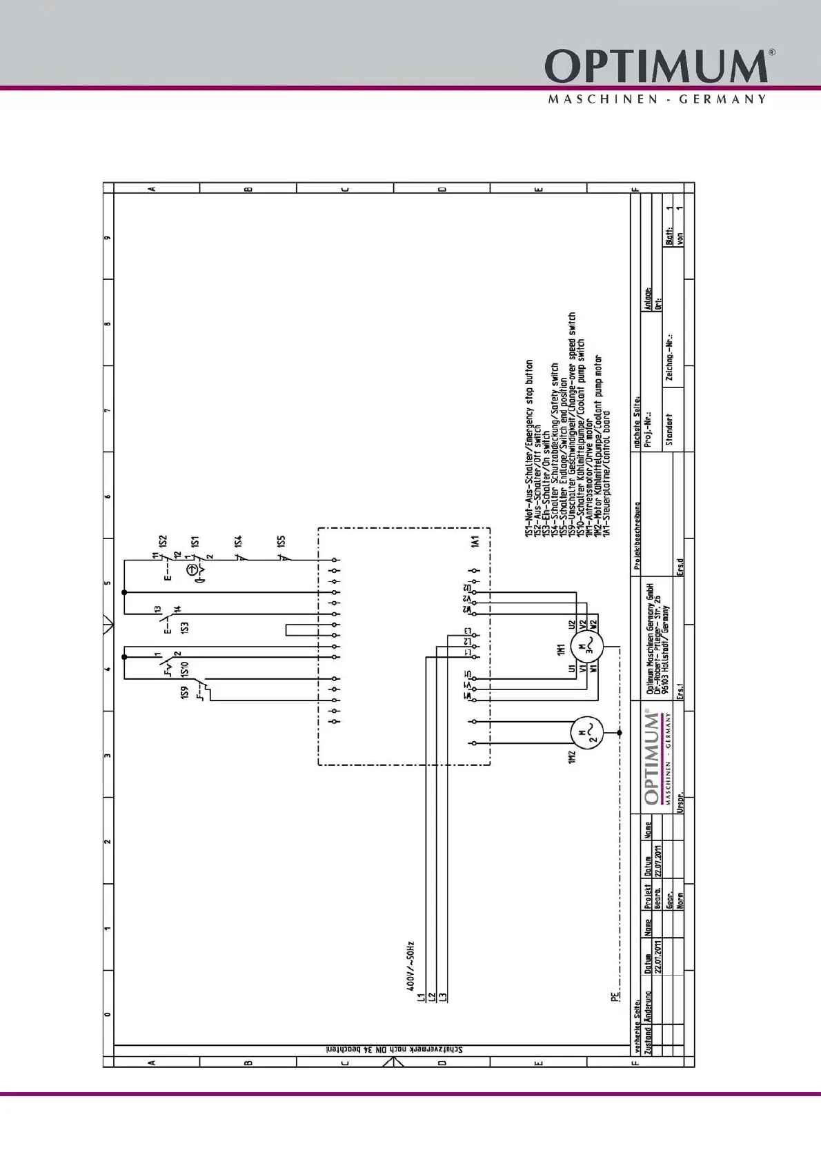 Optimum 3300260 - Schaltplan - Wiring Diagram 400 V - S275 N - Einkanalig - Single Channel