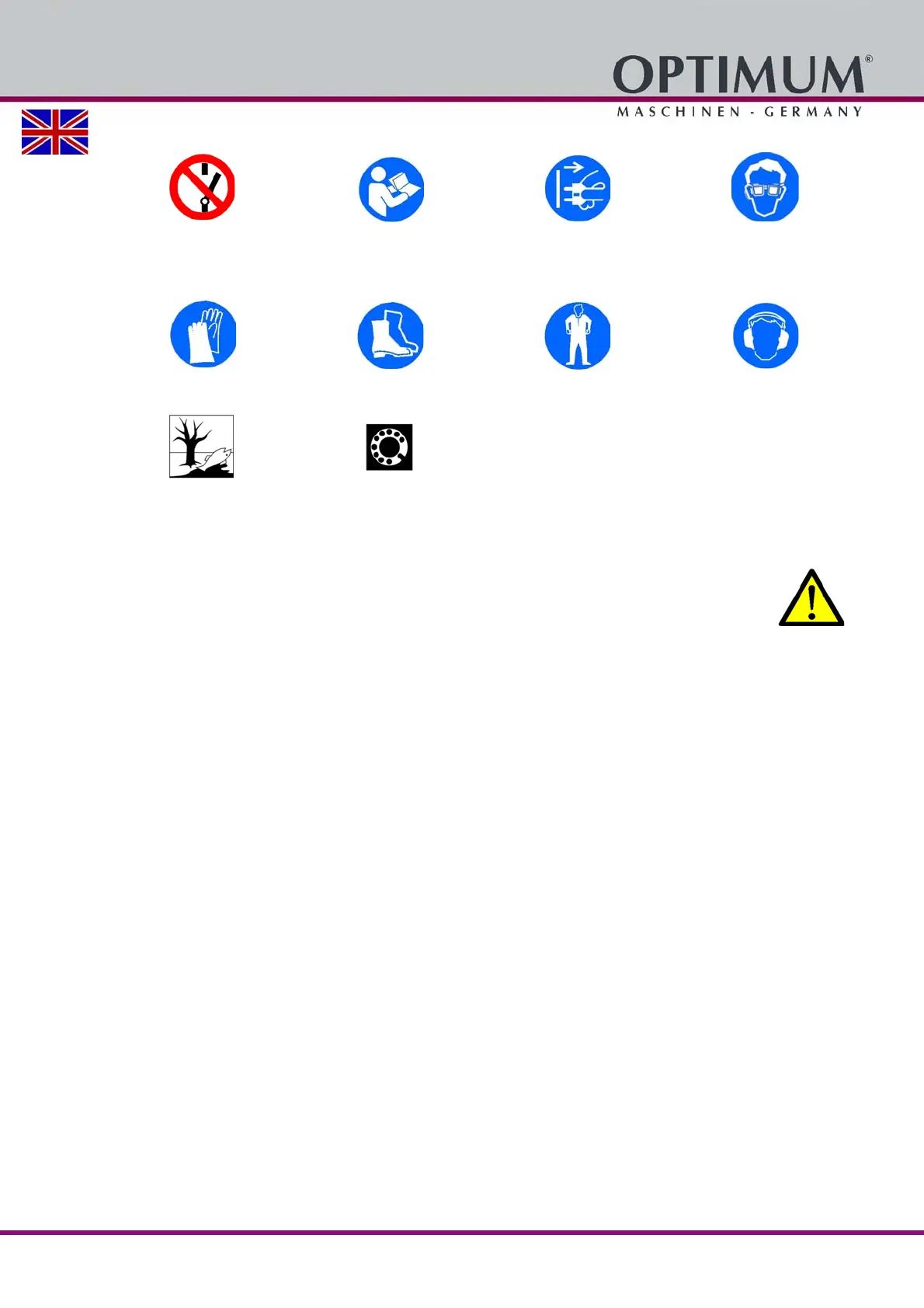 Wear protective gloves! Wear safety shoes! Wear a protective suit! Use ear protection!