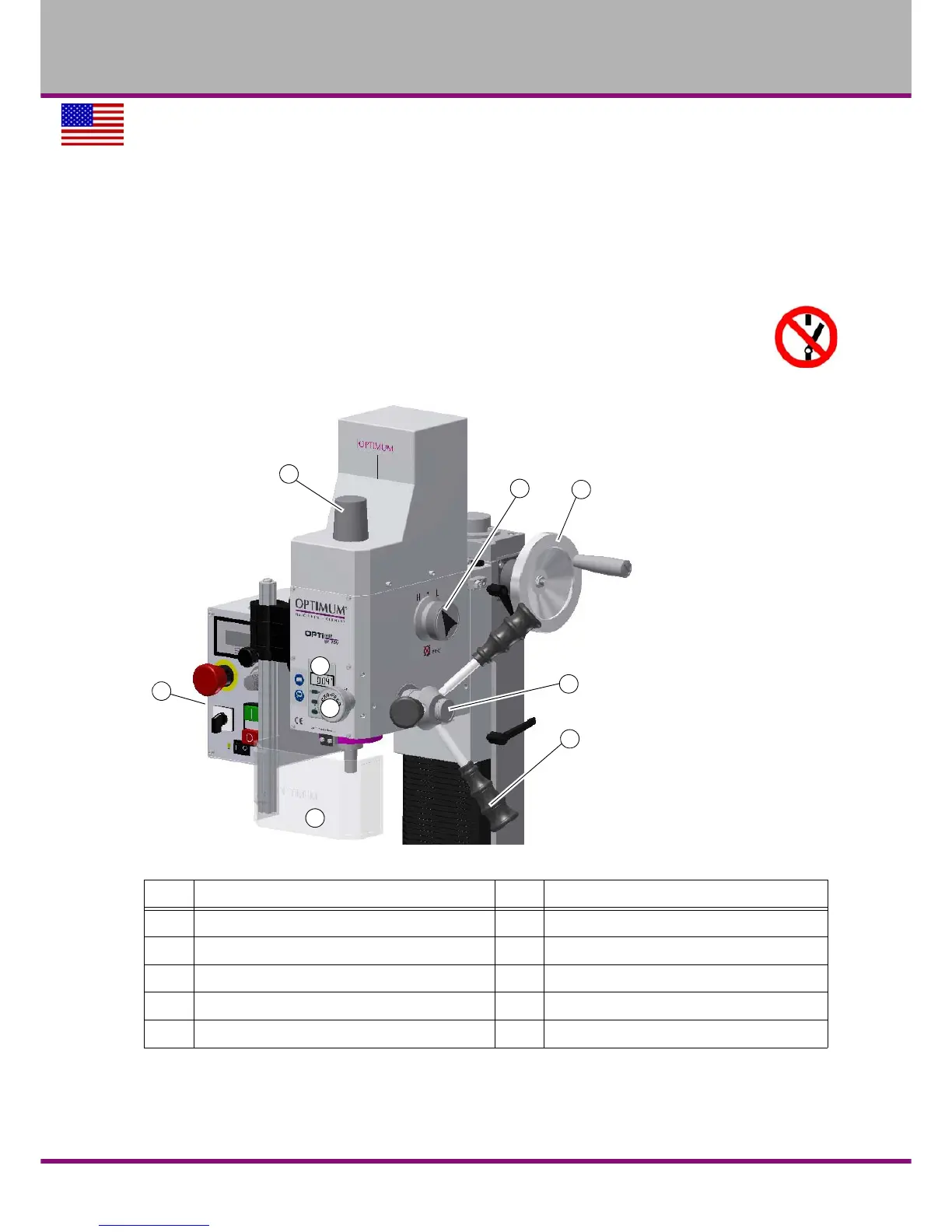 5 Crank for height adjustment of the mill drill head 6 Selector switch for reduction stage