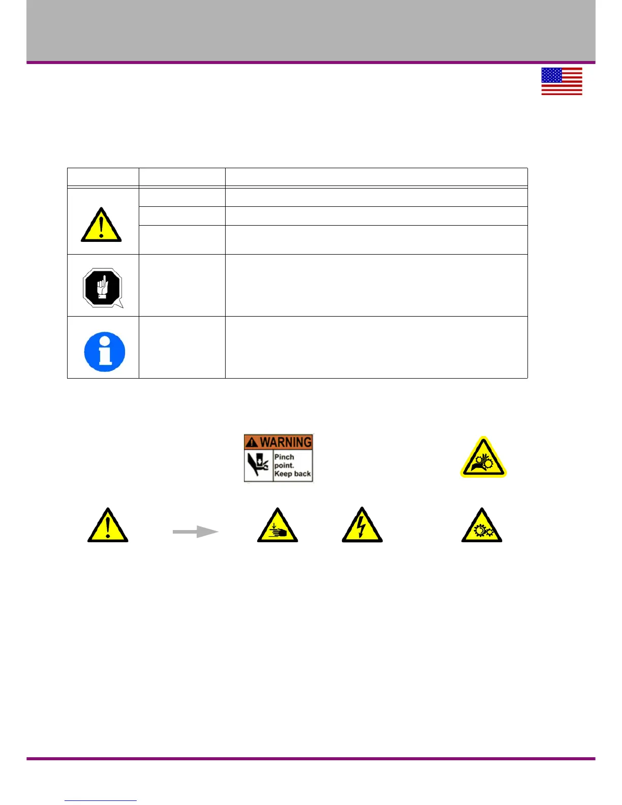 We classify the safety warnings into various levels. The table below gives an overview of the
