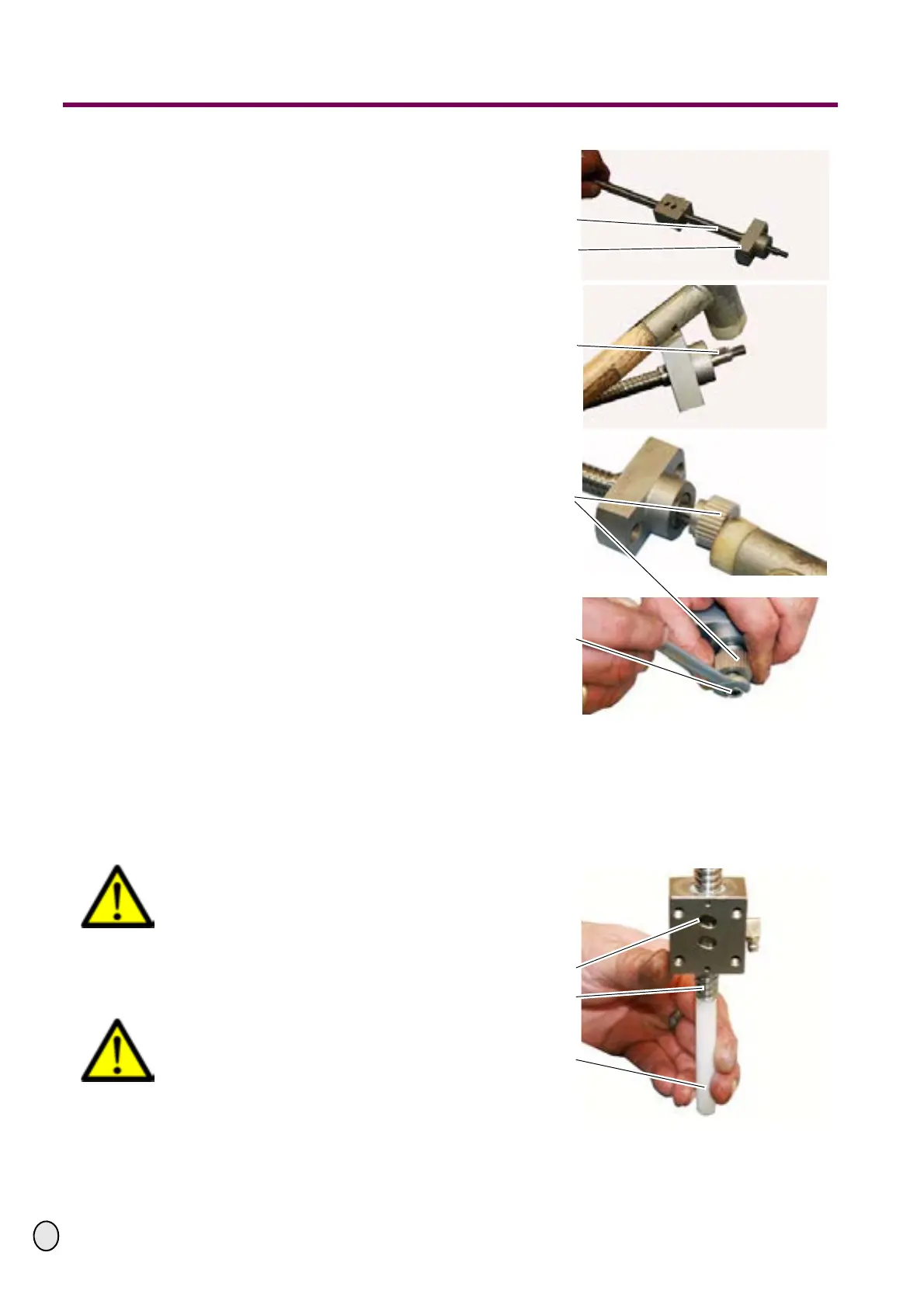 £ Put the spindle on the plastic bushing in order to hold the balls in the disassembled nut.