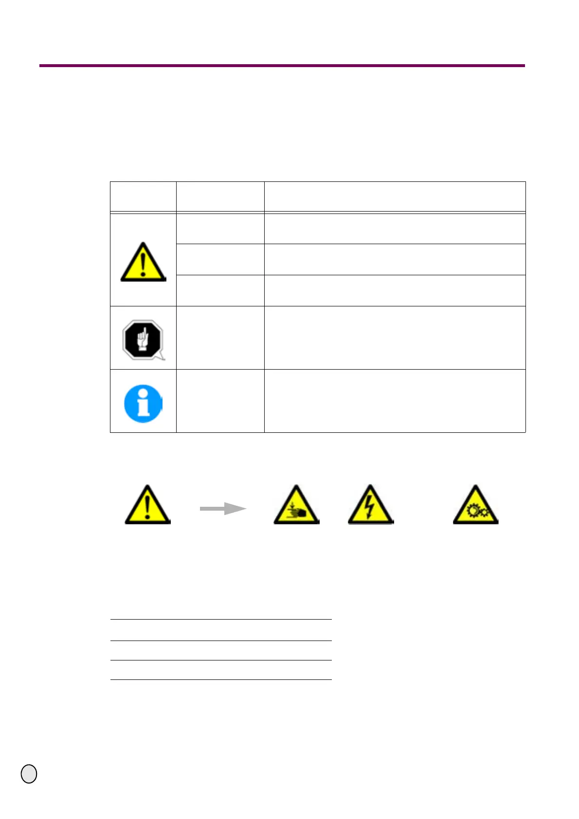We classify the safety warnings into various levels. The table below gives an overview of the