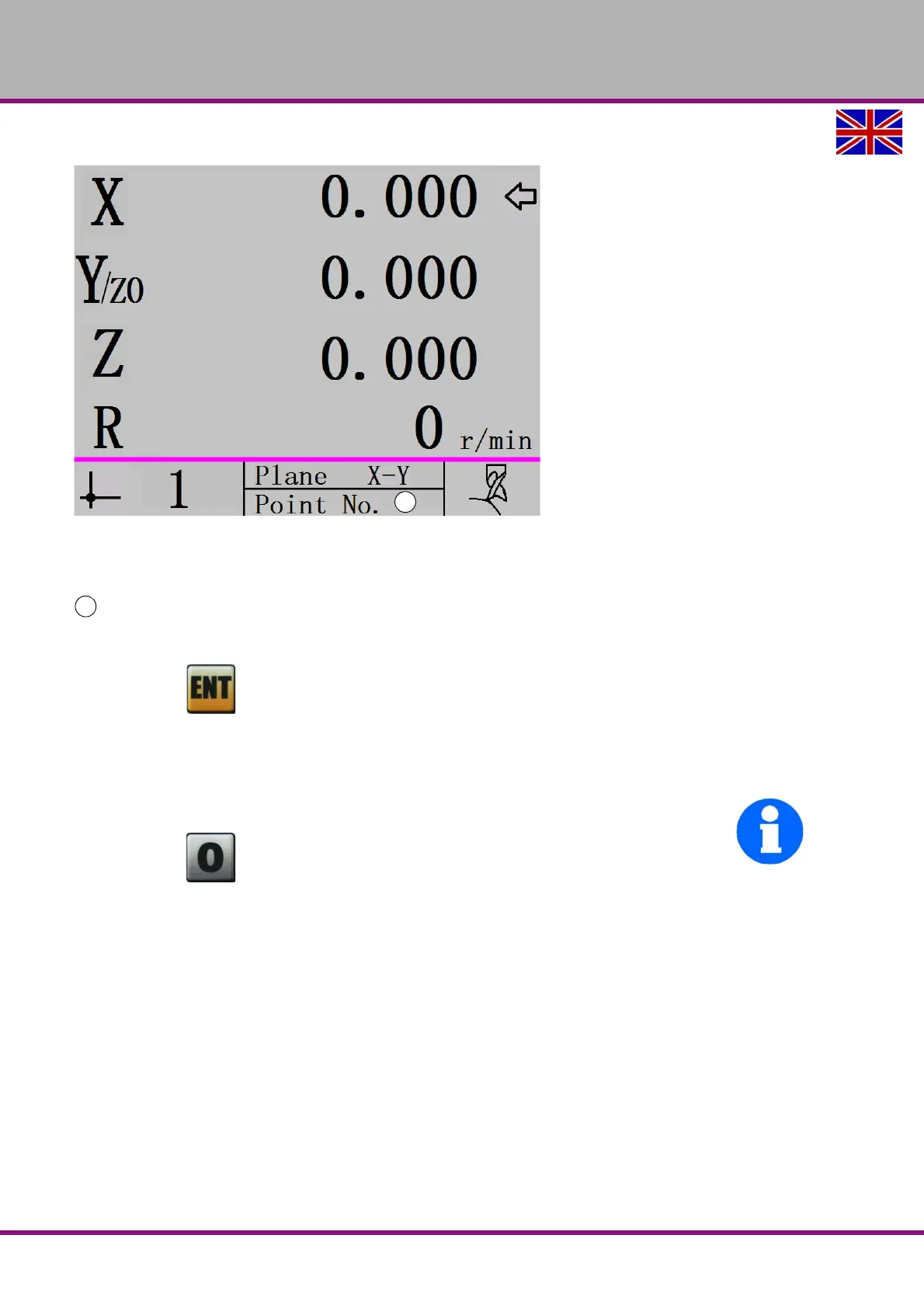 Press the button to display the second point of the coordinate plane. The machine