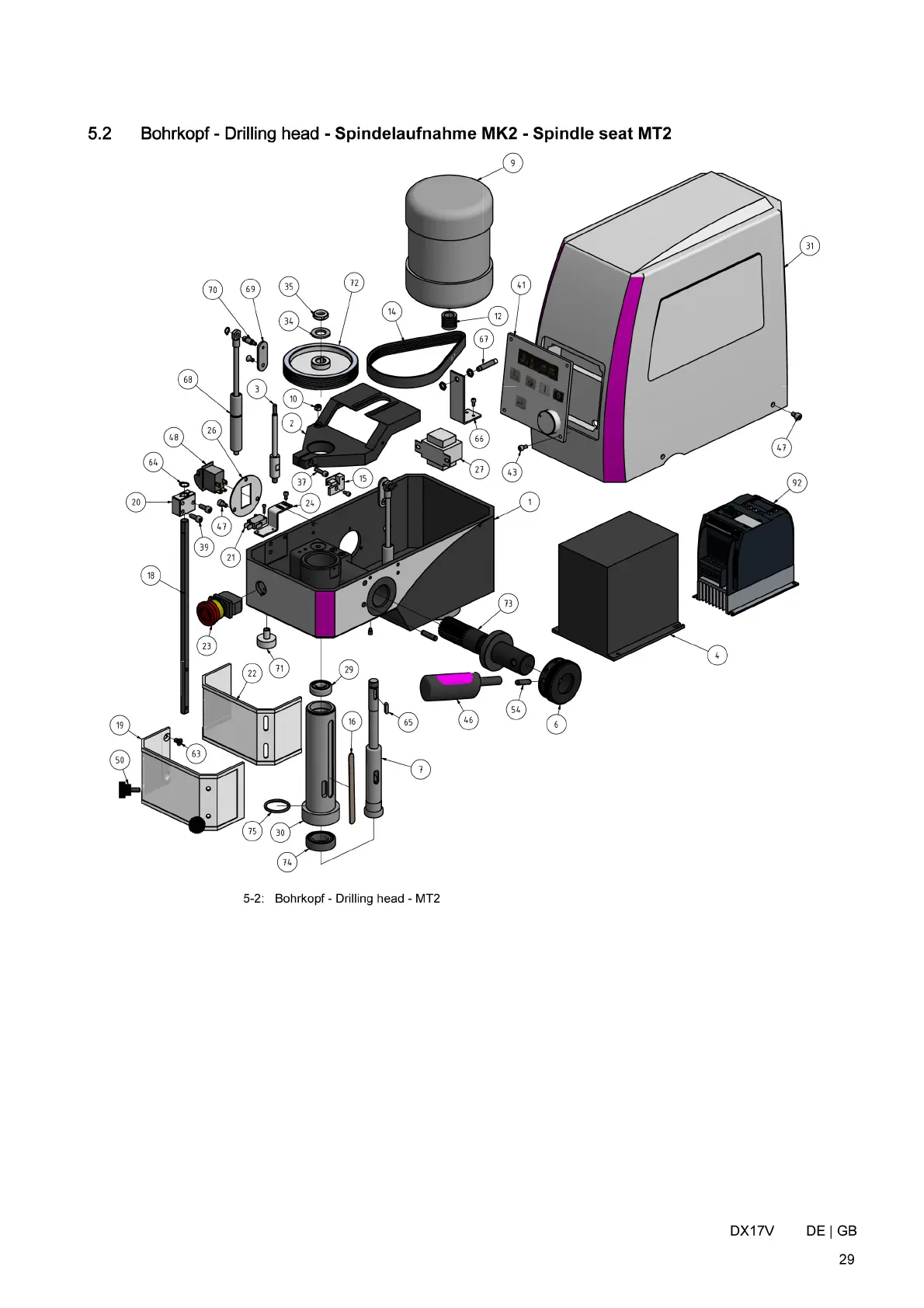 Optimum DX17V - Bohrkopf - Drilling Head - Spindelaufnahme MK2 - Spindle Seat MT2