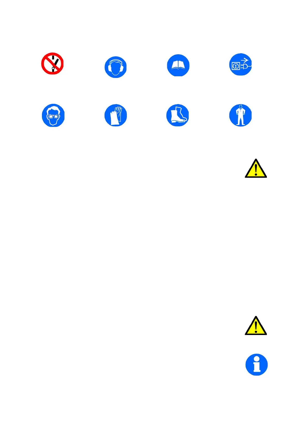 Wear protective glasses! Wear protective gloves! Wear safety shoes! Wear a protective suit!