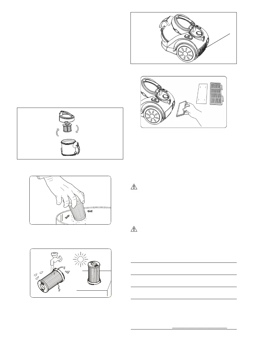Filtrza silnikiemmożna opłukaćciepłą wodą(maks. 40°C).