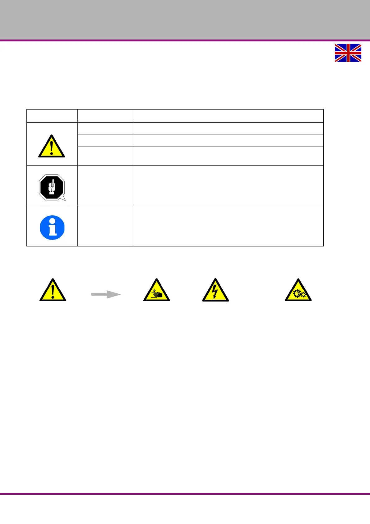 We classify the safety instructions into different levels. The table below gives an overview of the